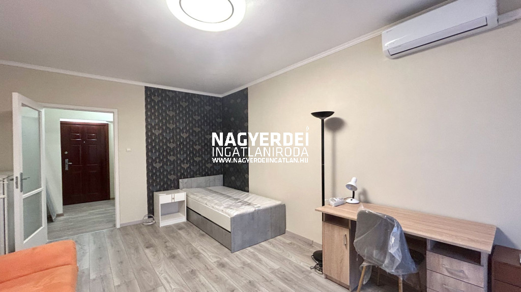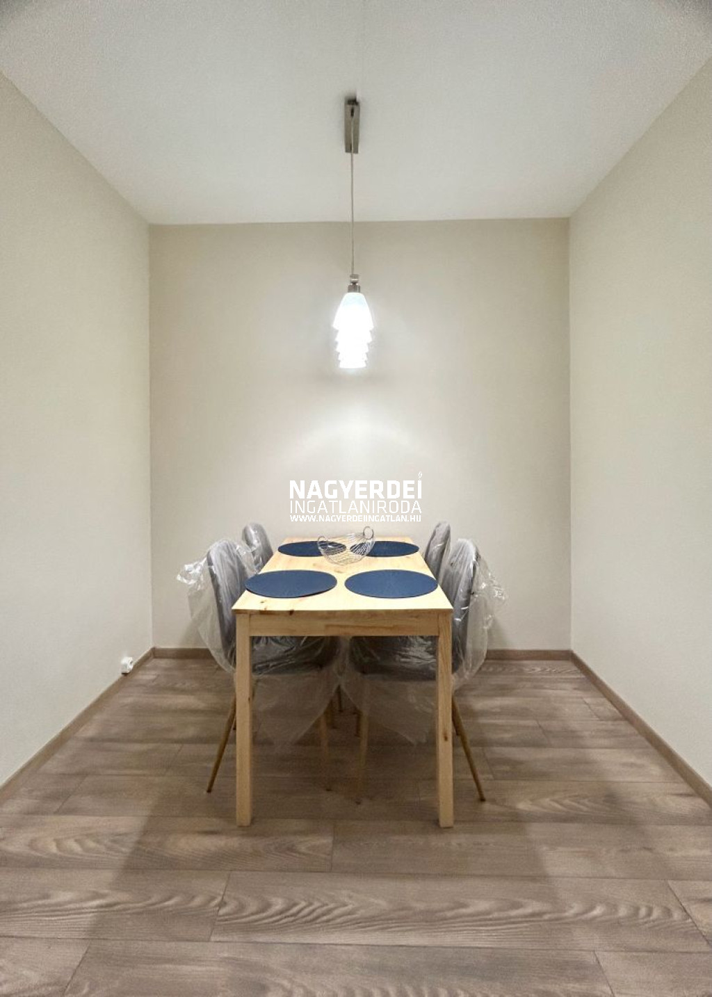 Debrecen-Újkert városrészen, a Malomparkhoz közel, liftes társasházban kiadó egy 2 szoba + étkezős, felújított panel lakás. Az ingatlan teljesen bútorozott és gépesített, légkondicionált, valamint 2 loggia tartozik hozzá. A parkolás ingyenesen megoldható, a közelben boltok, üzletek is megtalálhatóak. 2026.02.01.-től költözhető, 2 havi kaució szükséges. Referenciaszám: # 123884