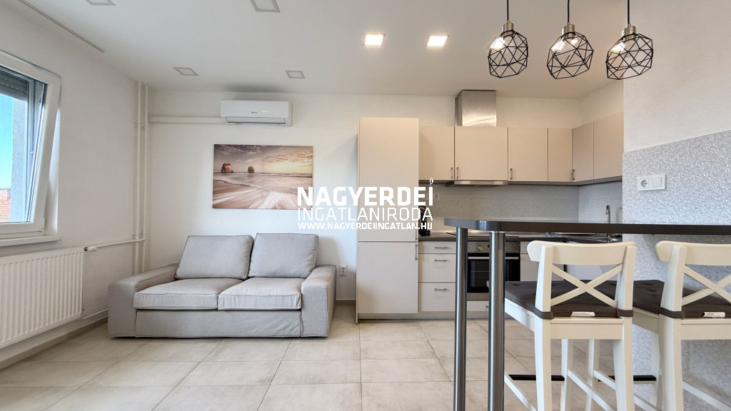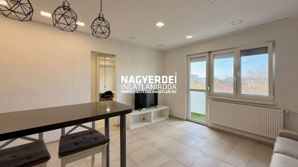 Debrecen-Egyetemváros, az Egyetem Főépületétől pár perc sétára, liftes társasházban kiadó egy teljeskörűen felújított, 1 háló + nappalis lakás. Az ingatlan bútorozott és gépesített, légkondicionált, műanyag nyílászárókkal és redőnyökkel felszerelt, valamint nagy erkély tartozik hozzá. A közelben, Spár, különböző üzletek, buszmegállók megtalálhatóak, a villamos vonalak 5 perc sétára elérhetőek. Azonnal költözhető, 2 havi kaució szükséges. Referenciaszám: #124717