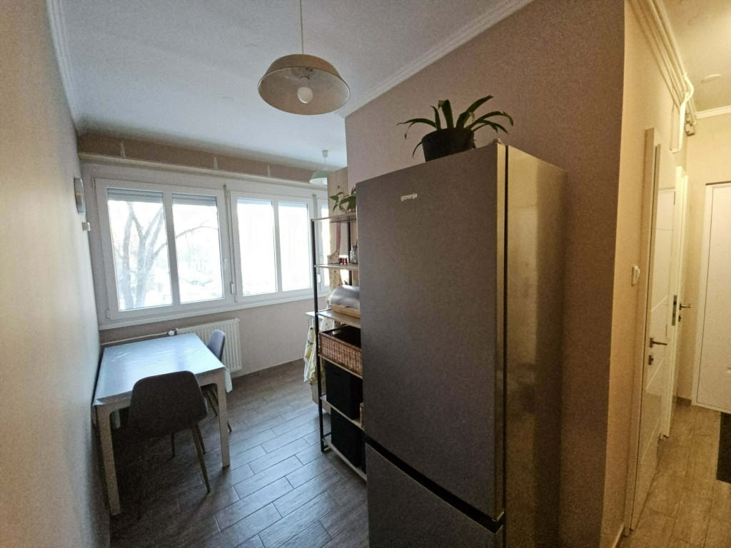 A lakás részben bútorozott, gépesített, mosogatógép is van. A nappaliban nincs ágy, a hálószoba teljesen bútorozott. A szobák külön nyílnak, a nappaliban klíma van. Fürdőszoba és wc külön van. Házközponti fűtésű egyedi méréssel, alacsony rezsijű. Műanyag nyílászárók redőnnyel, szúnyoghálóval felszereltek. A közlekedőben lévő beépített szekrények könnyítik a holmik tárolását. 4 nm-es erkély tartozik hozzá. Lift nincs. Közös költség 14.152 Ft. Átlagrezsi 20.000 Ft. Dohányzás egyáltalán nem megengedett, állat nem hozható. Az épület 15 cm-es szigetelőanyaggal szigetelt. A lakáshoz saját, 4 nm-es pince tartozik.