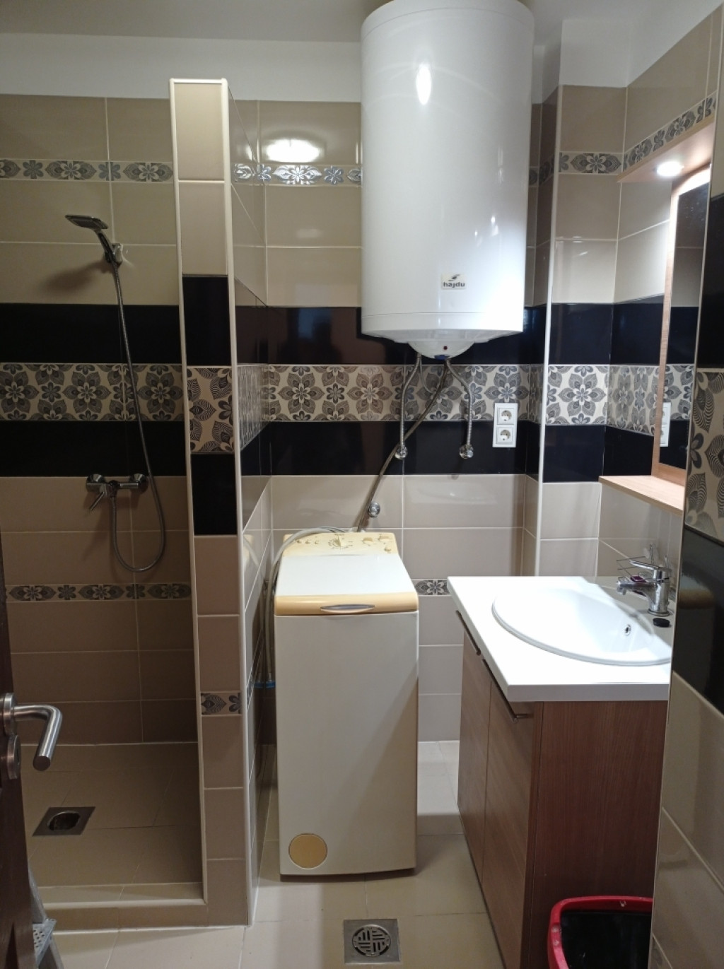 The apartment has a large mechanized kitchen, dining table, electric oven + hob. new refrigerator with freezer, separate toilet, bathroom with shower, washing machine, balcony, large living room, from which a separate small office, rest room (or whatever you want to use it for). New plastic windows and doors, equipped with shutters.