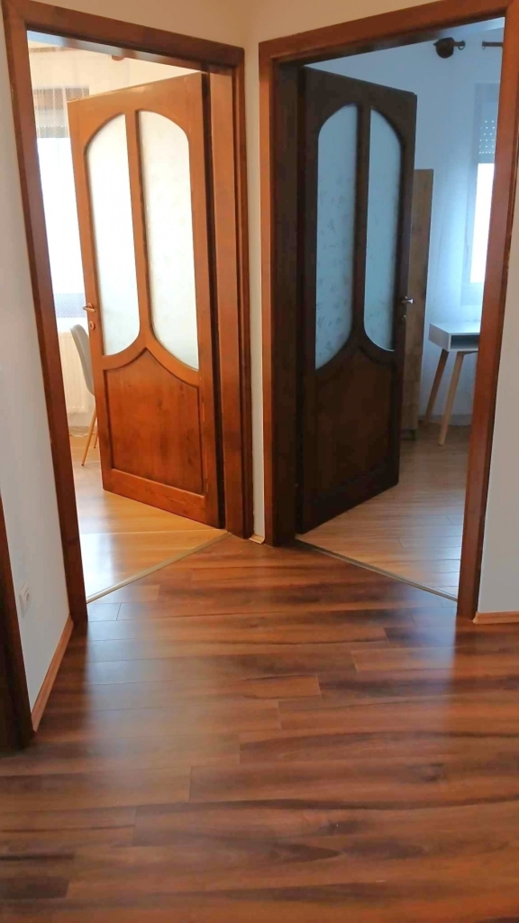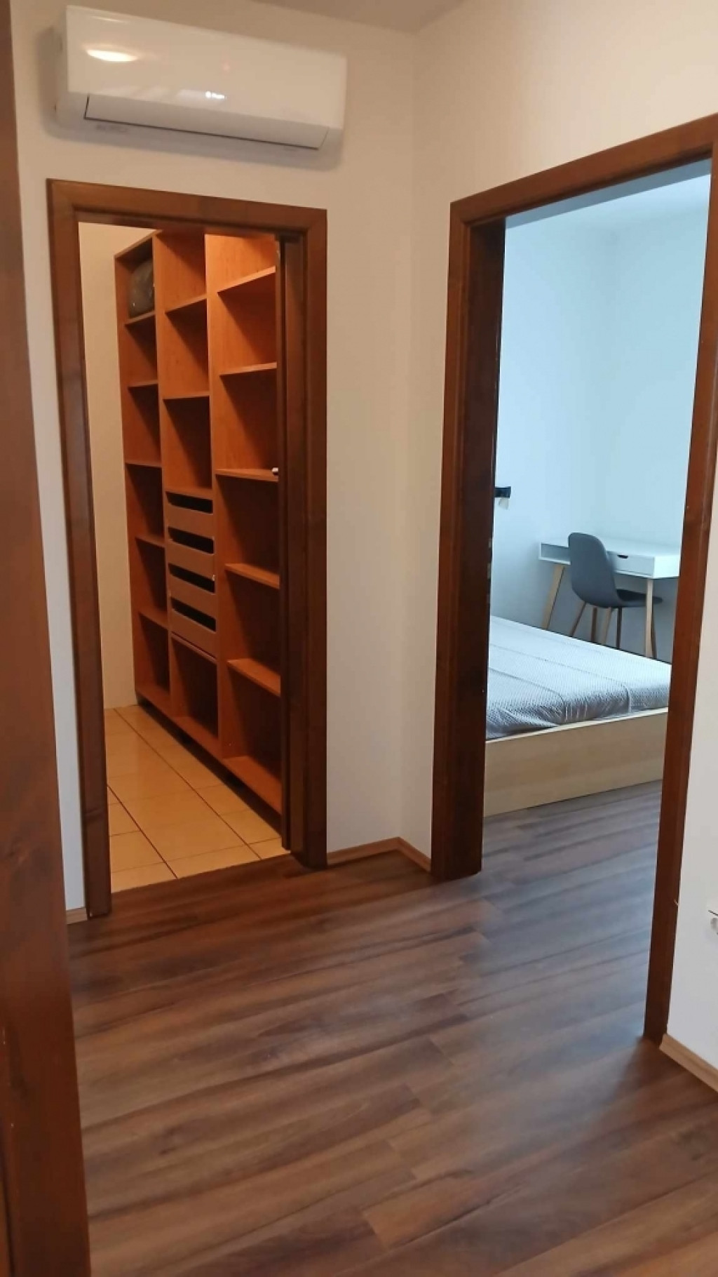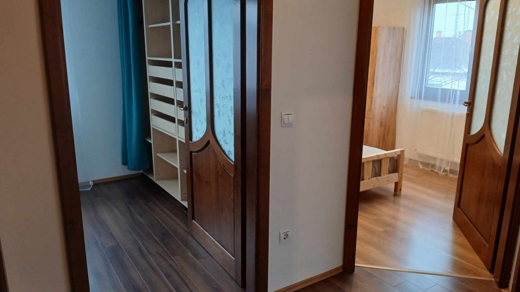 A szobák külön nyílnak. Az egyik szobában faltól-falig gardróbszekrény. Gardróbszobában polcos és fiókos szekrények vannak. Fürdőszoba kádas és zuhanyfülkés is és a wc-vel együtt van. Nyílászárók redőnnyel, szúnyoghálóval felszereltek. Az emeleti közlekedőben elhelyezett légkondicionáló kellemes hőmérsékletet biztosít az egész lakásban. A lépcső alatt tárolószekrény van kialakítva.