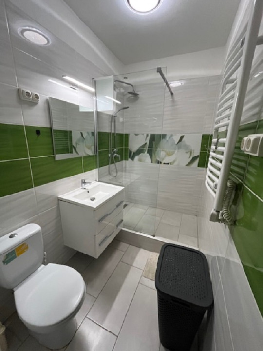 - modern fürdőszoba nagy, épített zuhanyzóval, törölközőszárítóval