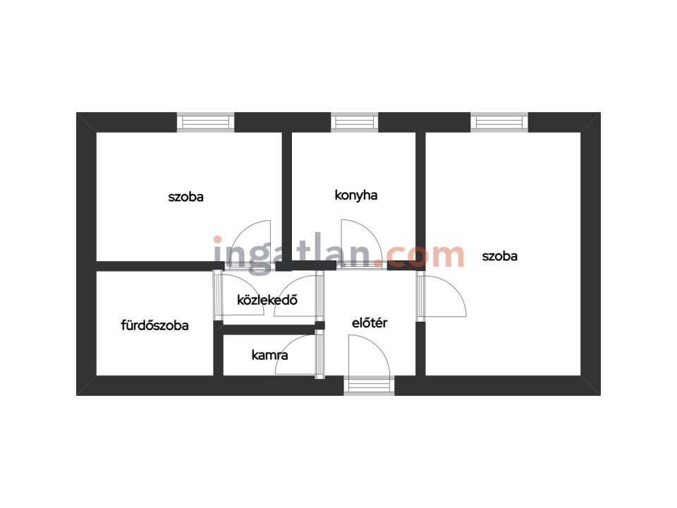 - helyiségei: 2 egész szoba, előtér, közlekedő, konyha-étkező, fürdőszoba, kamra