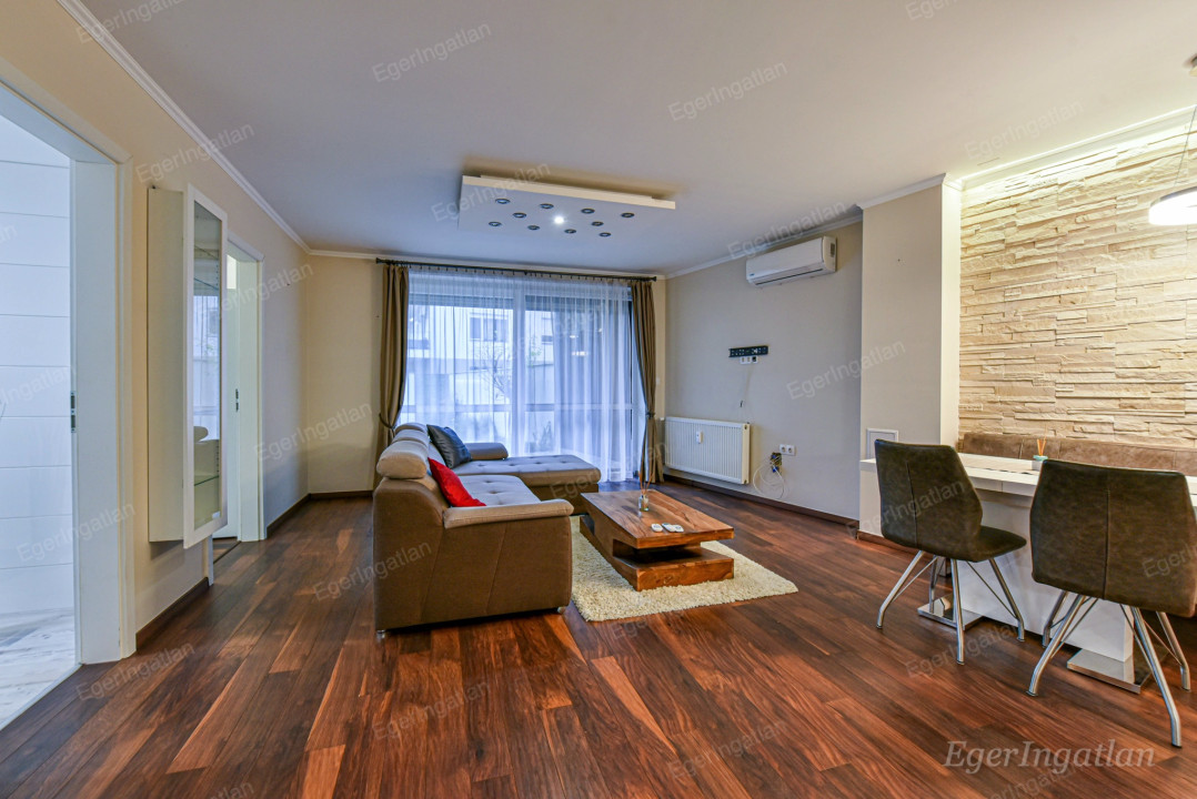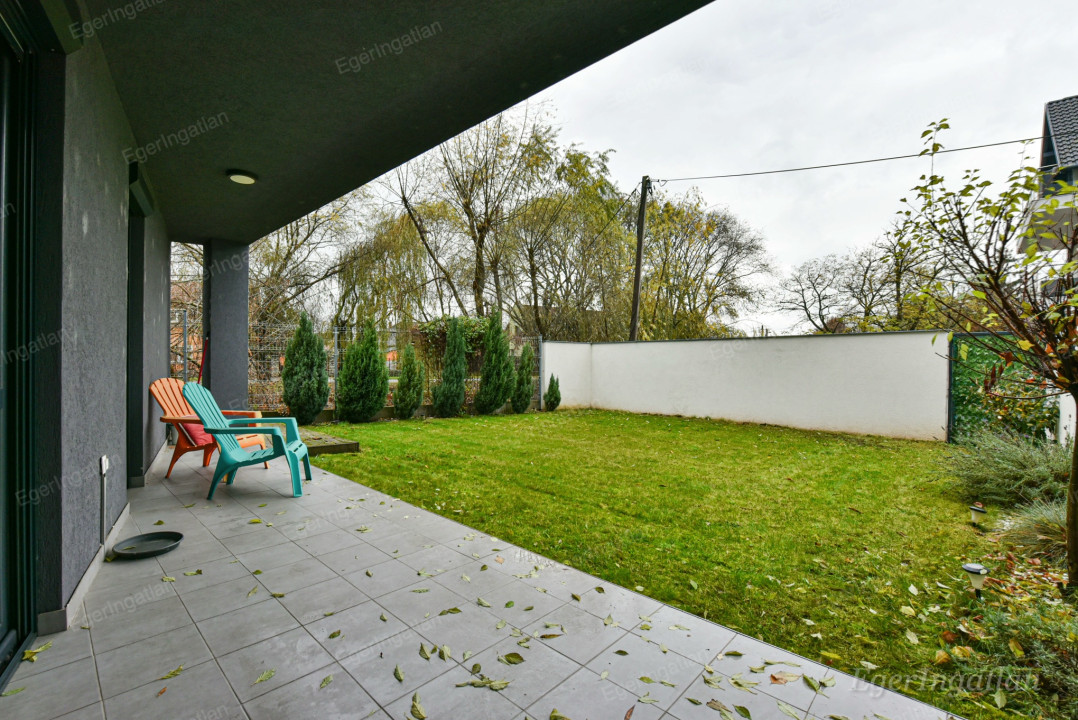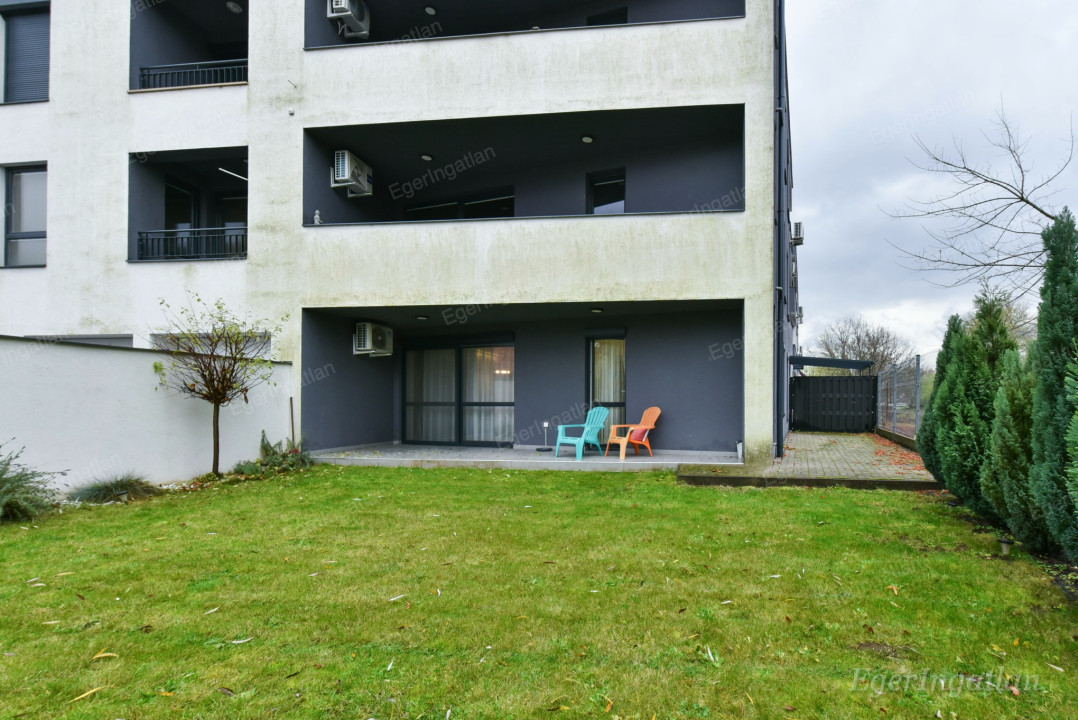 Eger zöldövezeti részén, közvetlenül a patak mellett, 2018-as építésű társasházban kínálunk kiadásra egy 70 m²-es, földszinti, modern lakást, amely családi ház jellegű kényelmet biztosít.