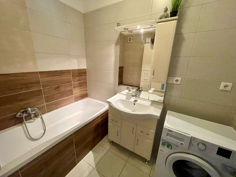 A lakás bútorozottsága: 2 db előszoba szekrény, beépített gépesített konyhabútor (sütő, tűzhely, pára és szagelszívó, hűtő), kanapé, komód, tv állvány, étkező asztal 4 db székkel, 2 db ágy, szekrények, polcok, fürdőszoba bútor, mosógép).