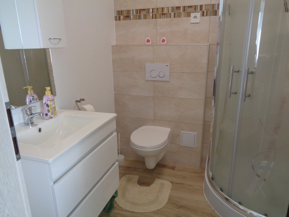 A hálószobában a ruhásszekrény beépítése is elkészült , és egy igényes előszoba bútorral is felszerelt . A meleg vizet villanybojler, a fűtést jól szabályozható elektromos fűtőpanelek biztosítják. A lakás hűtő-fűtő klímával is rendelkezik .