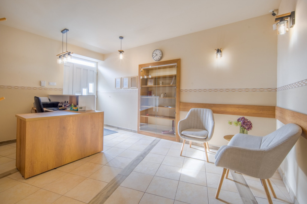 - Világos, jól elkülöníthető fogadótér, amely ideális ügyfélfogadásra vagy várakozásra