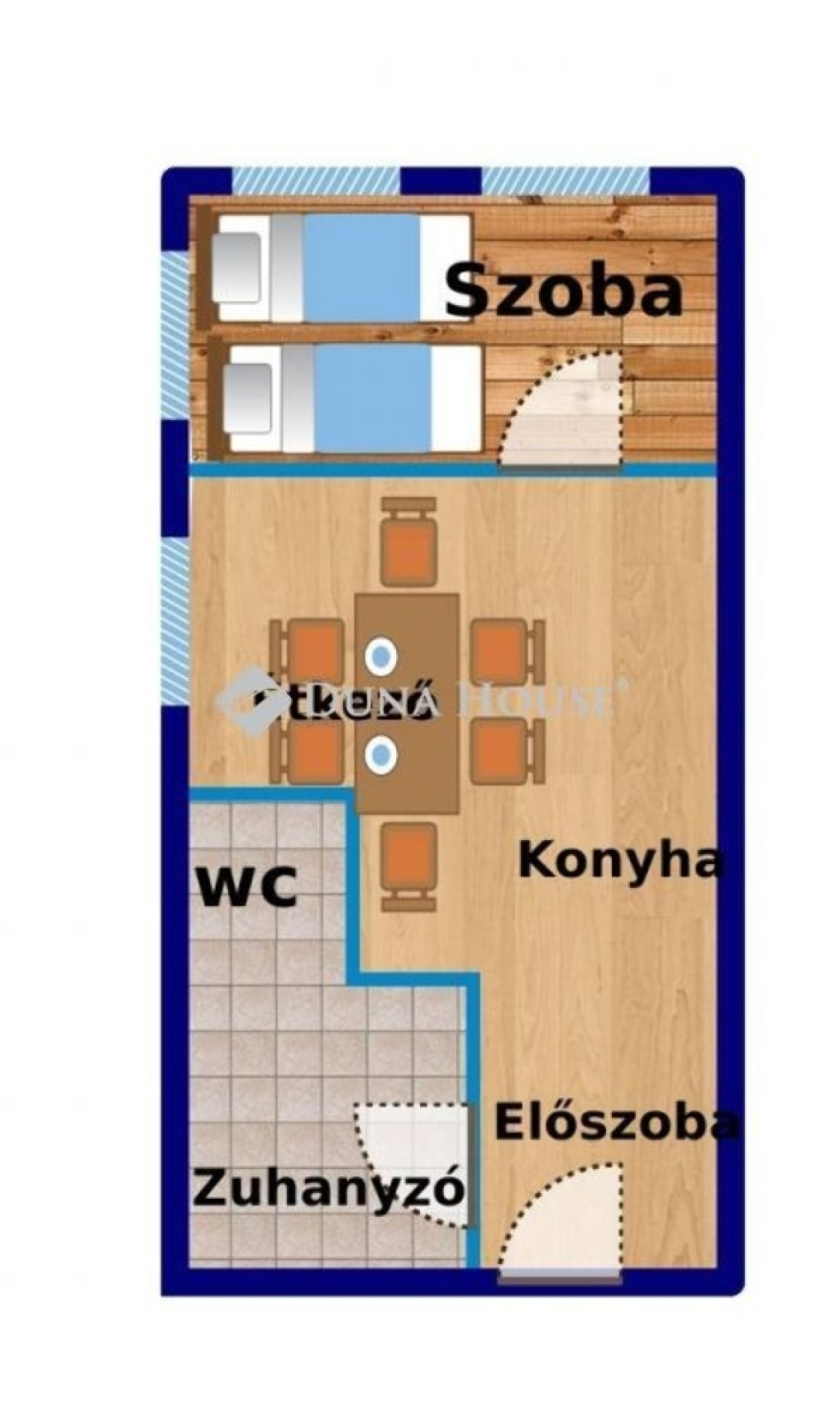 Kialakítása: amerikai nappali konyha, szoba, fürdő+wc. Az ingatlan 2019-ben épült, 2 szintes 8 lakásos társasház.