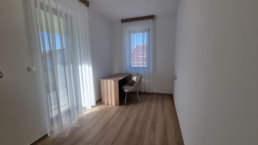 2 különálló szoba van. Az egyikben franciaágy és beépített gardróbszekrény, a másikban íróasztal és beépített gardróbszekrény. Ebbe a szobába igény esetén ágyat vagy kanapét lehet kérni.