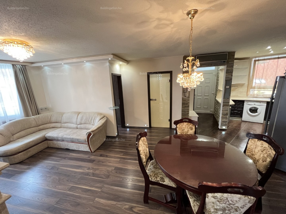 2026.03.10.-TŐL!!! Kaposváron a belvárosban liftes házban 3. emeleti, igényesen berendezett 61 m2-es lakás kizárólag hosszú távra kiadó. A lakásban nappali-látványkandallóval-étkező-konyha (beépített konyhai gépekkel, Whirlpool mosogatógép, mikró, Gorenje főzőlap és sütő, Samsung hűtőszekrény), 2 szoba - mindegyik erkéllyel, fürdőszoba-wc kerültek kialakításra. A lakás rezsije nagyon kedvező, a fűtése és a meleg víz ellátása házközponti fűtéssel és egyedi mérőórákkal megoldott, továbbá légkondicionáló, riasztó és intelligens otthonrendszer került kiépítésre. A lakást a tulajdonosa legfeljebb 3 személy részére kívánja kiadni, az ingatlanban a dohányzás és a kisállat tartása nem engedélyezett. (506)