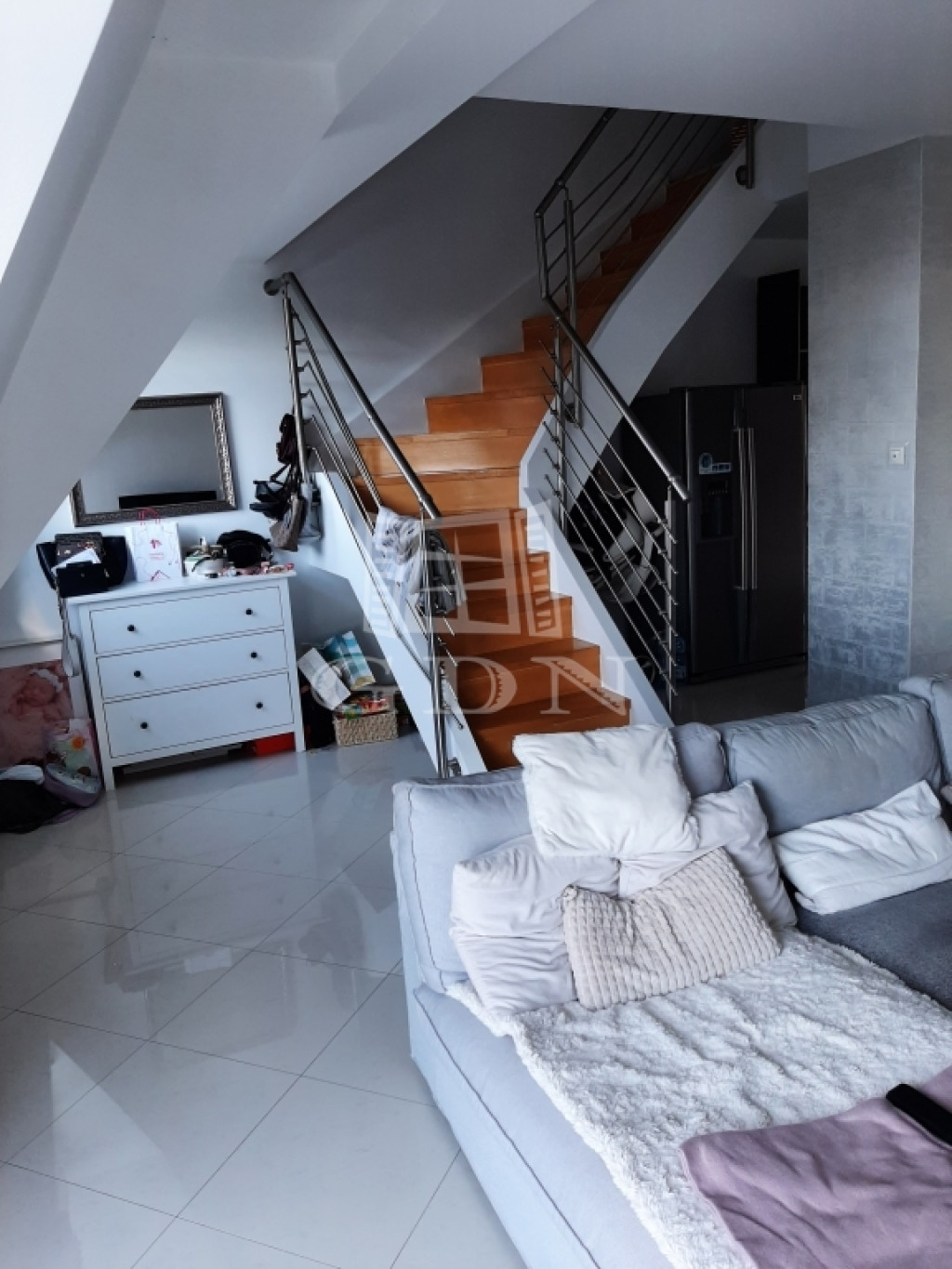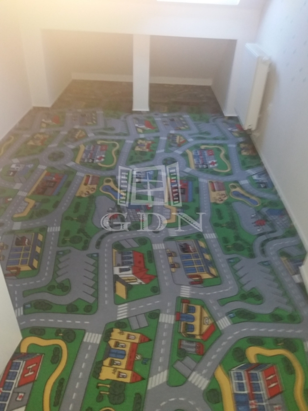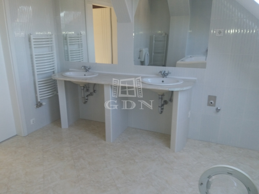 Kényelmes kiosztású lépcsőn jutunk a felső szintre, ahol egy kisebb gyerekszoba, egy méretes hálószoba és egy igazán hatalmas és pazar fürdőszoba került kialakításra. Az itt lakók felfrissülését egy jakuzzi funkciójú kád biztosítja.