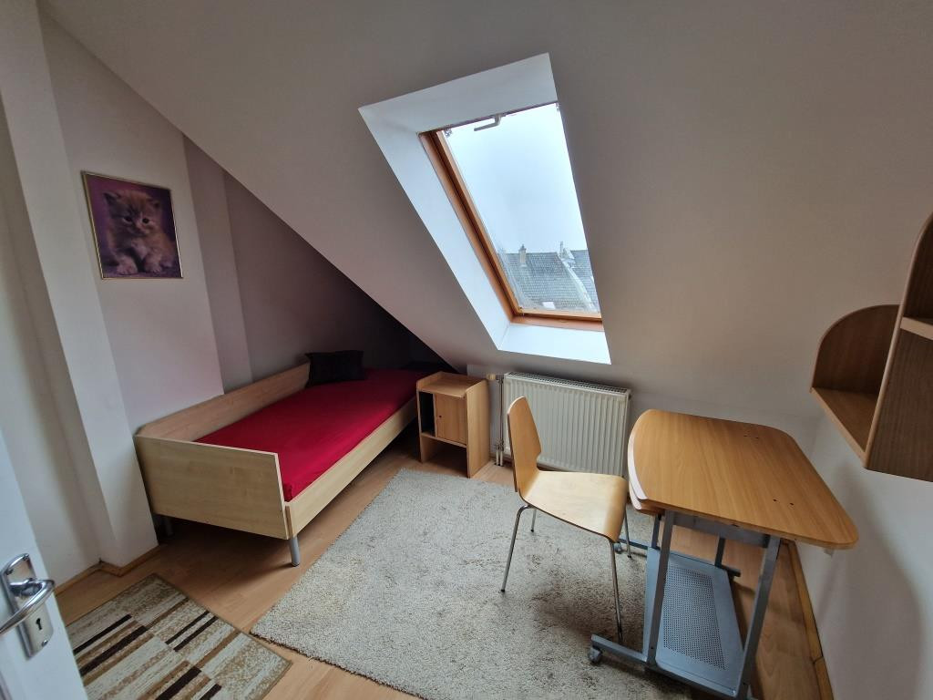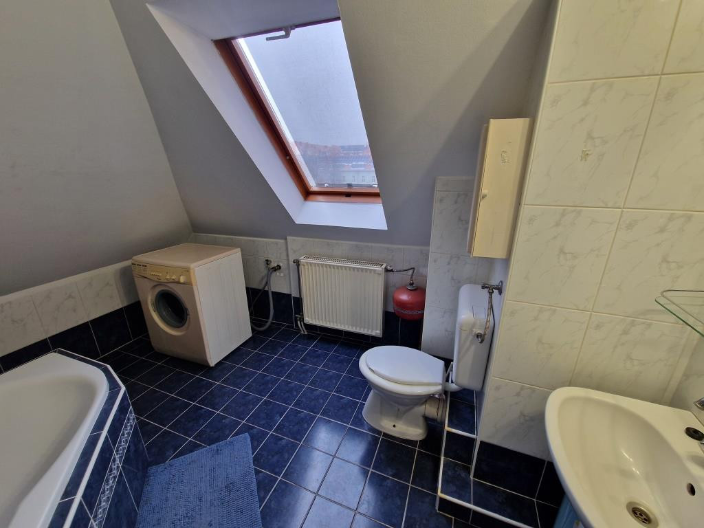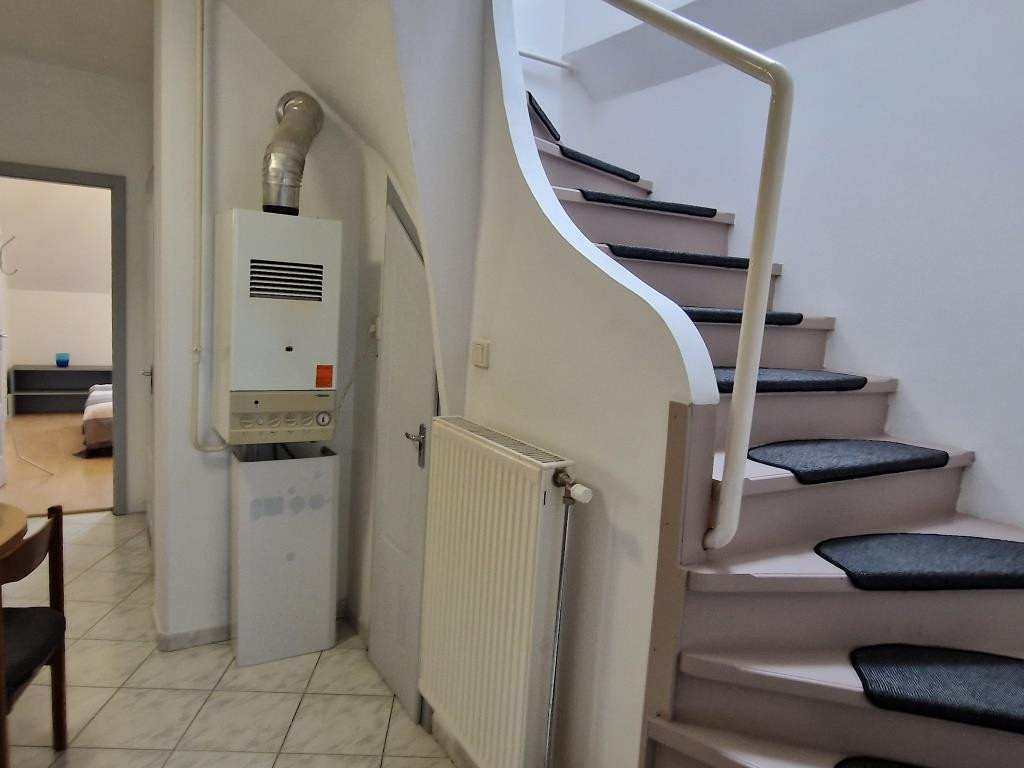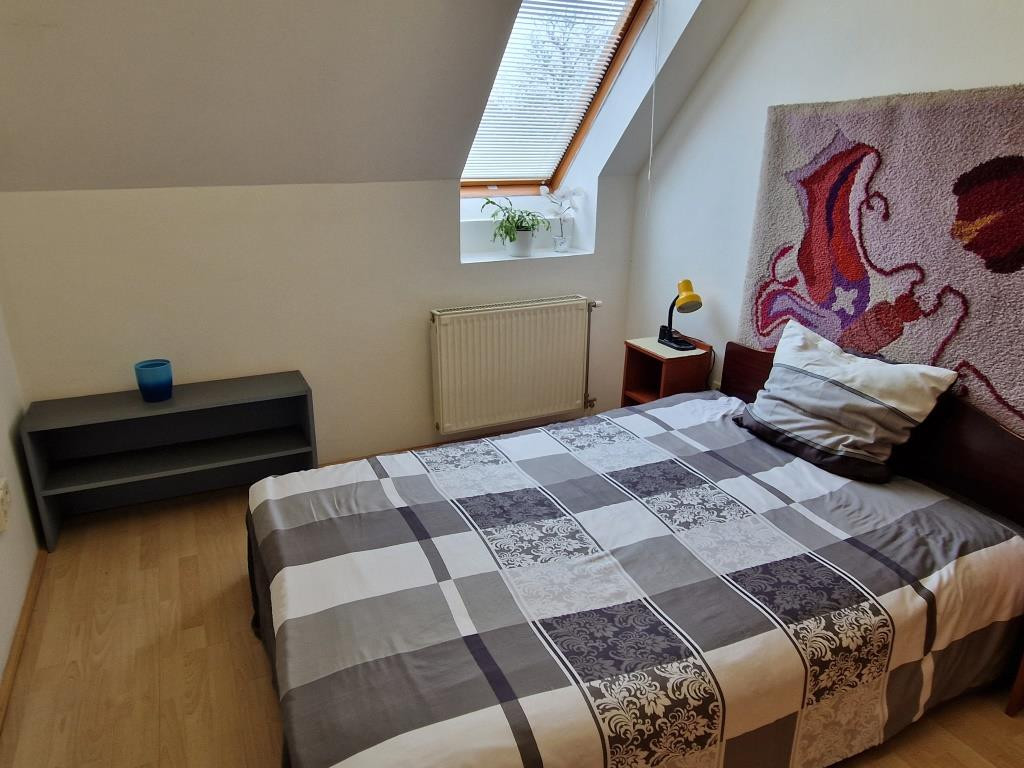 Kaposvár belvárosában, a Teleki utcában kínáljuk bérbevételre ezt a belső kétszintes, 1 + 3 félszobás lakást. Alapterülete 87 m2, a társasház harmadik emeletén helyezkedik el. Alsó szintjén a tágas előtér étkezőként is szolgál, innen nyílik a konyha, a nagyobb méretű nappali szoba, az egyik félszoba, egy zuhanyzós fürdő, valamint egy kis kamra. Innen vezet fel a lépcső a felső szintre, ahol találunk még egy fürdőt sarokkáddal, és két kisebb hálószobát. A lakás tágas, világos, barátságos, elrendezése praktikus. Fűtése saját gázkazánnal megoldott, és légkondi berendezés is van. A lakás a képeken látható bútorzattal és háztartási gépekkel együtt kiadó. Van lehetőség garázst is bérelni, ennek ára plusz 25 EFt havonta. Nemdohányzó bérlőt keresünk hosszabb távra, legalább egy évre, aki a kéthavi bérleti díjnak megfelelő összegű kaució és az első havi bérleti díj kifizetése után beköltözhet. Dohányzás és állattartás tilos.