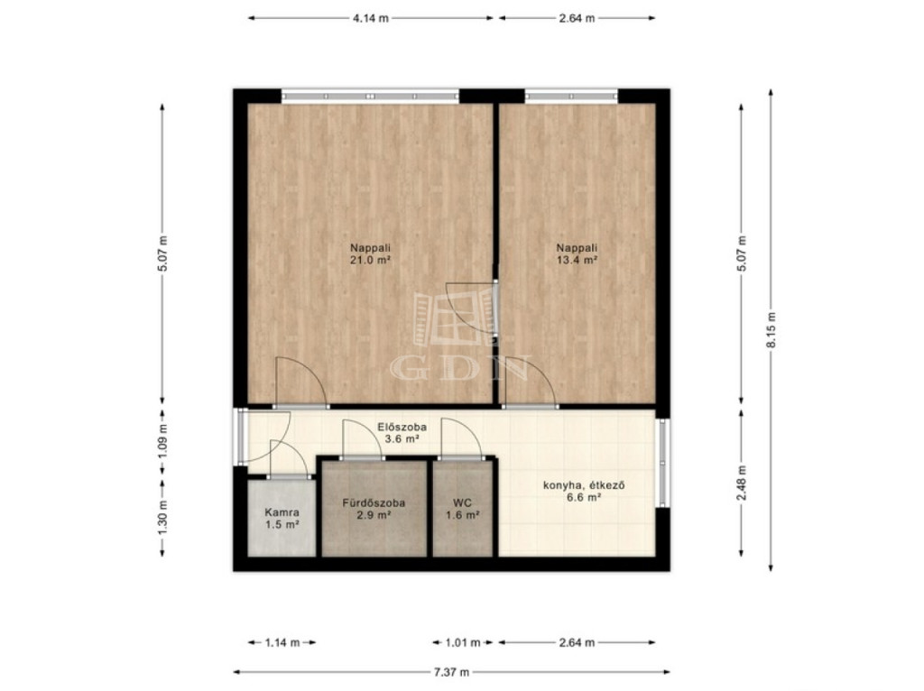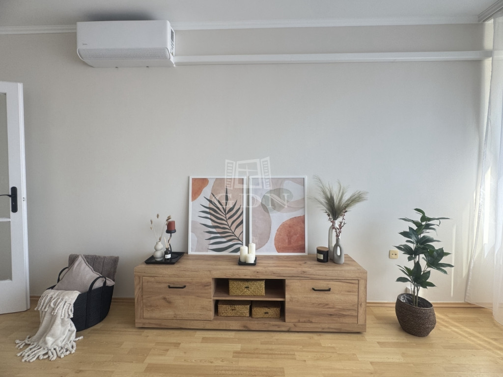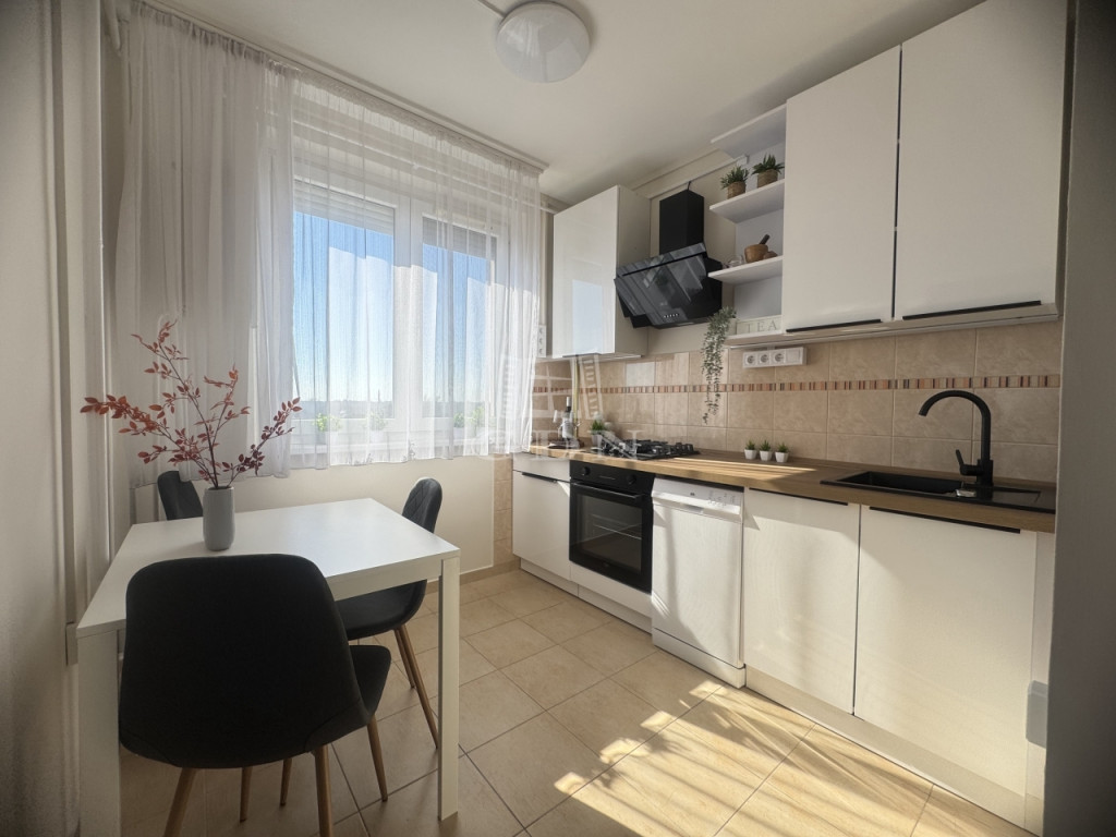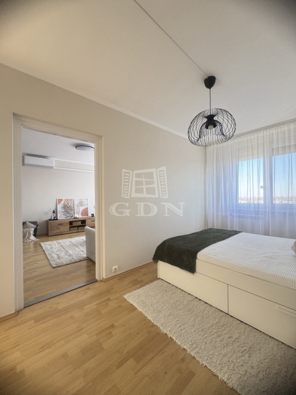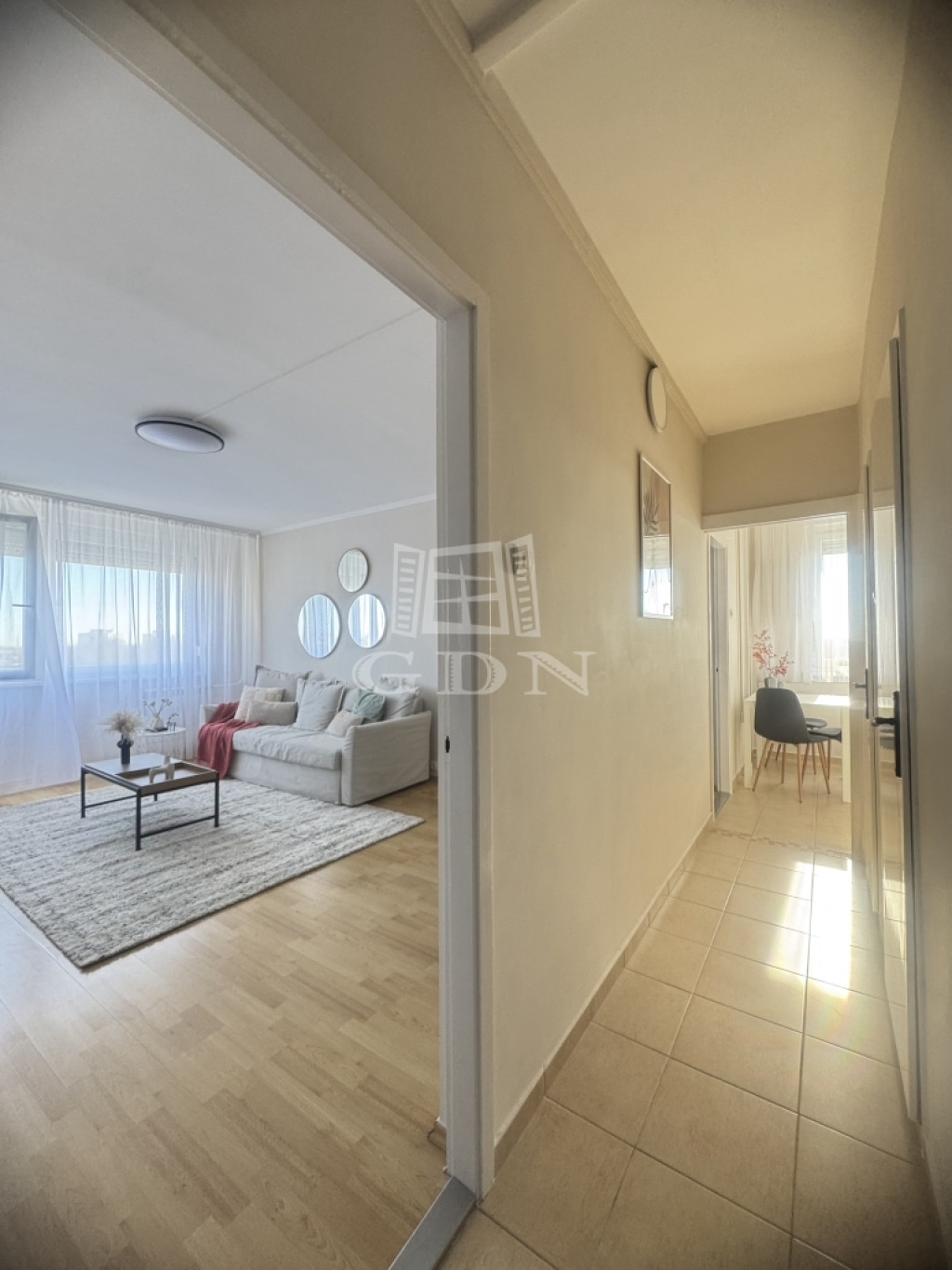 A 2 szobás frissen felújított lakás egy karbantartott, liftes panelház 7. emeletén található, a magas emeletnek köszönhetően minden helyisége nagyon világos, tágas és modern életteret biztosít leendő lakója számára. A hőszigetelt ablakok redőnnyel felszereltek, és minden helyiségben van szúnyogháló. A bejáratot új, biztonsági bejárati ajtó védi. A szobákban laminált parketta, a konyhában, kamrában és a vizes helyiségekben hidegburkolat van. A nappaliban hűtő-fűtő klíma található, amely a lakás körbejárhatóságának köszönhetően minden helyiségben kellemes hőmérsékletet biztosít a meleg napokon.