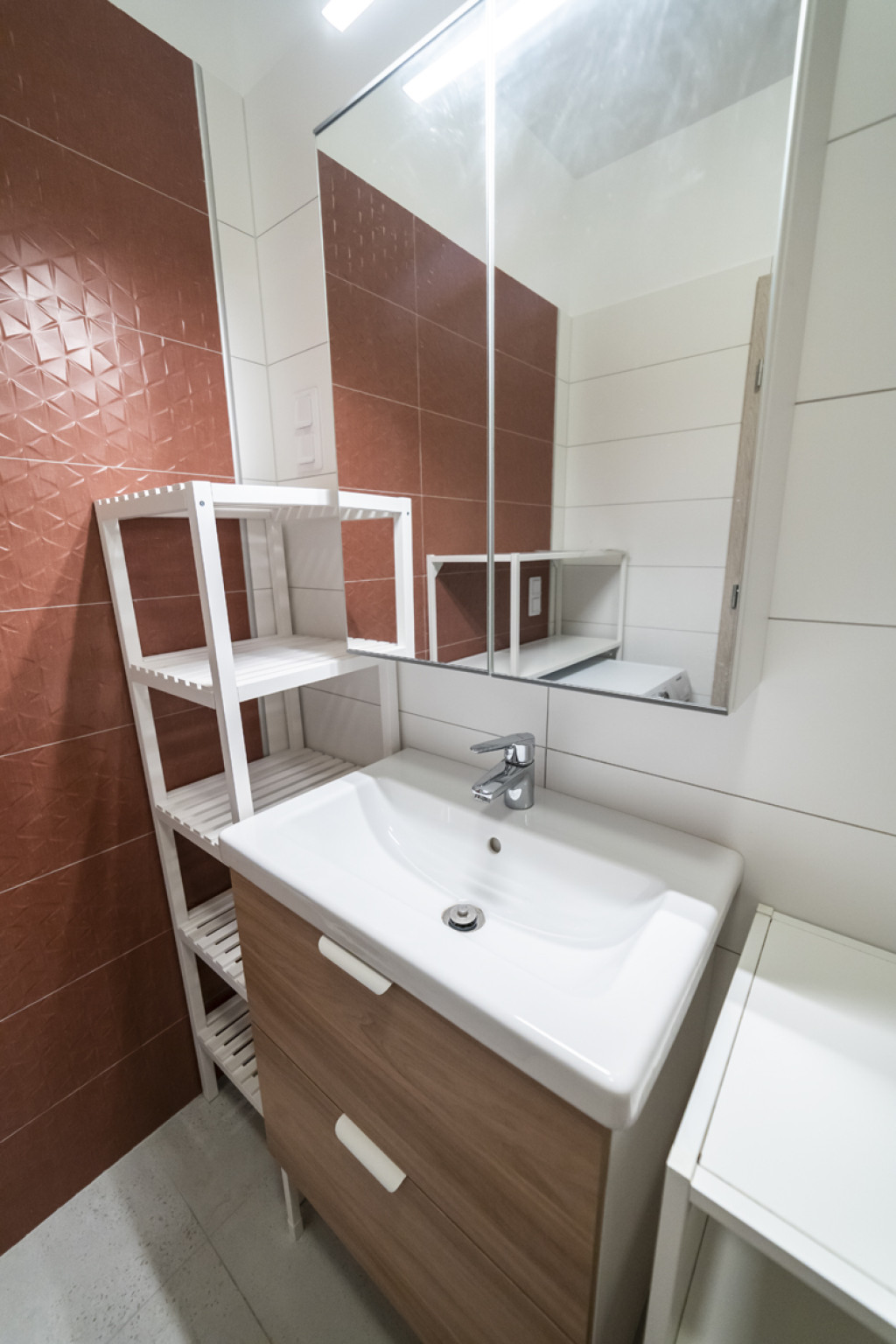 A lakás kialakítása egyedi, praktikus elrendezésű, világos, napfényes.