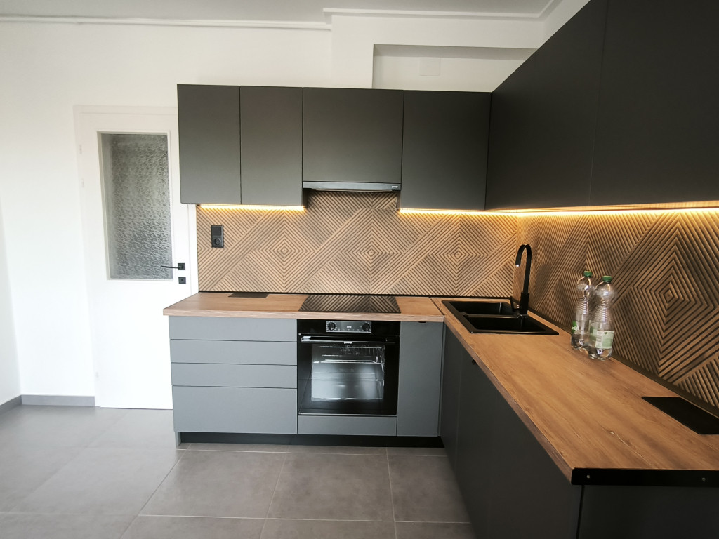 Remek elosztás, külön nyíló szobák, erkély, egyedi méretre tervezett gépesített konyhaberendezés jellemzi az ingatlant.