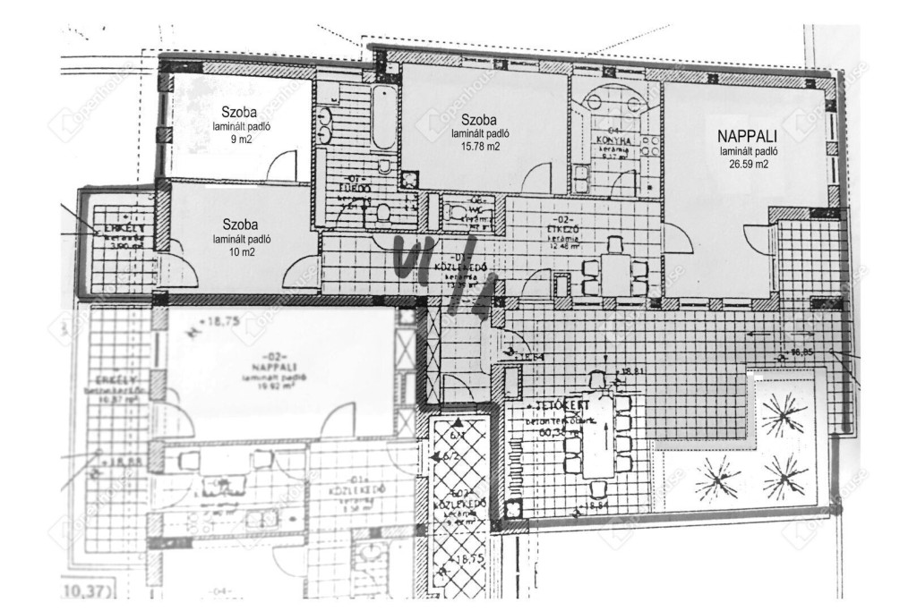 - a lakótér nettó területe 106 m2, a hozzá tartozó terasz és erkély területe pedig 70 m2