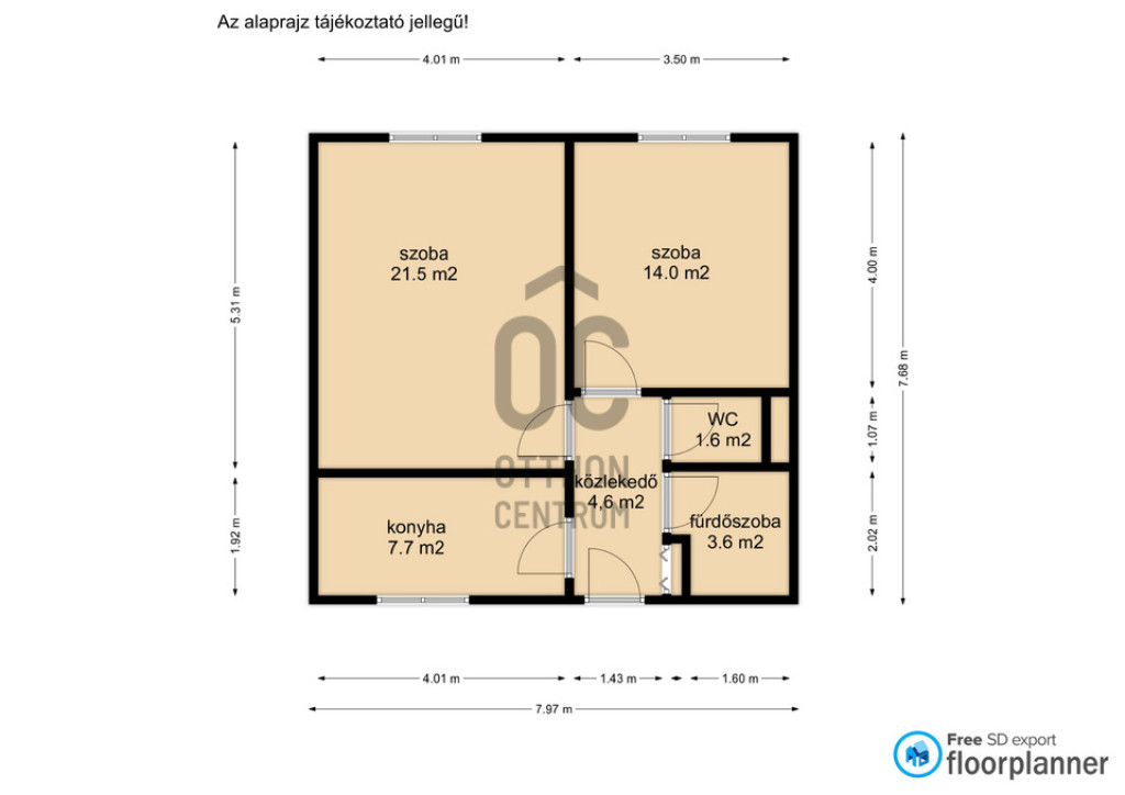 - A szobákban laminált padló, a többi helyiségben járólap van.