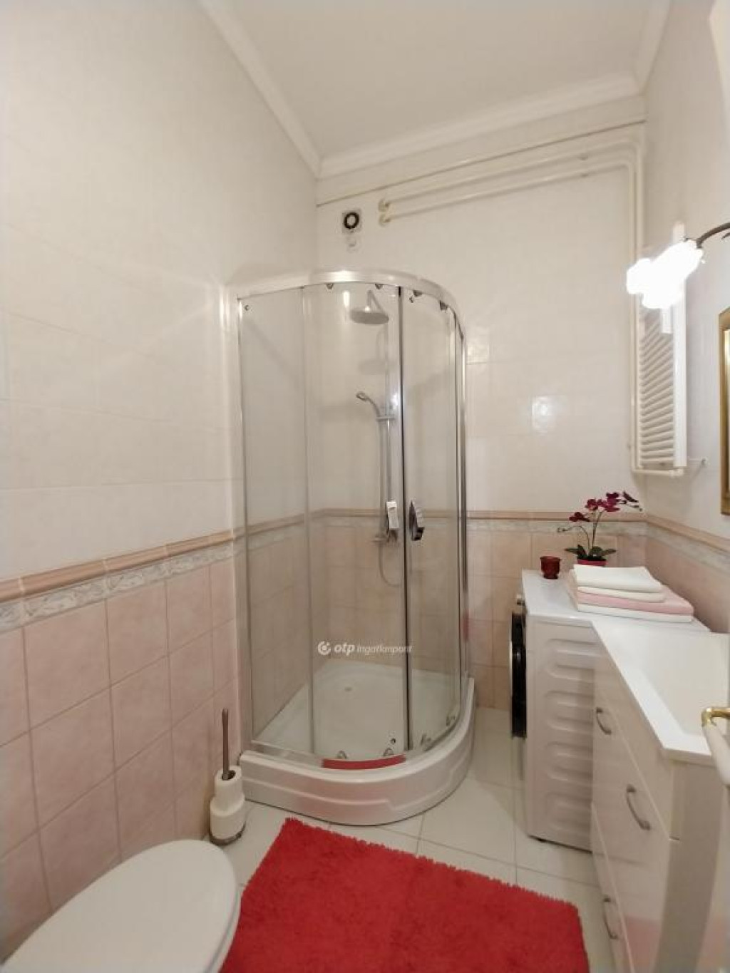 Távfűtés, modern zuhanyzós fürdőszoba.