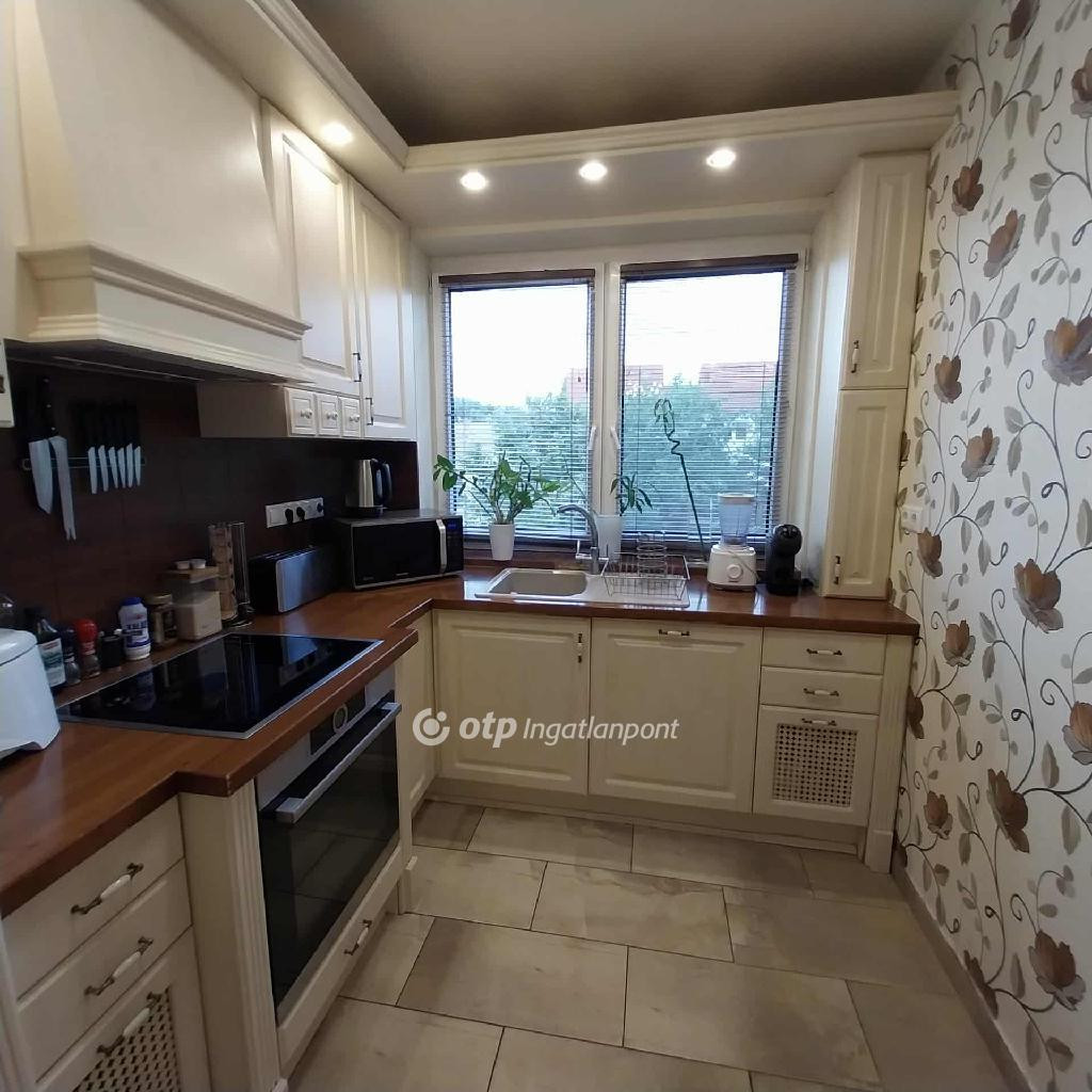 Konyha-étkező beépített szekrényekkel, gépekkel.