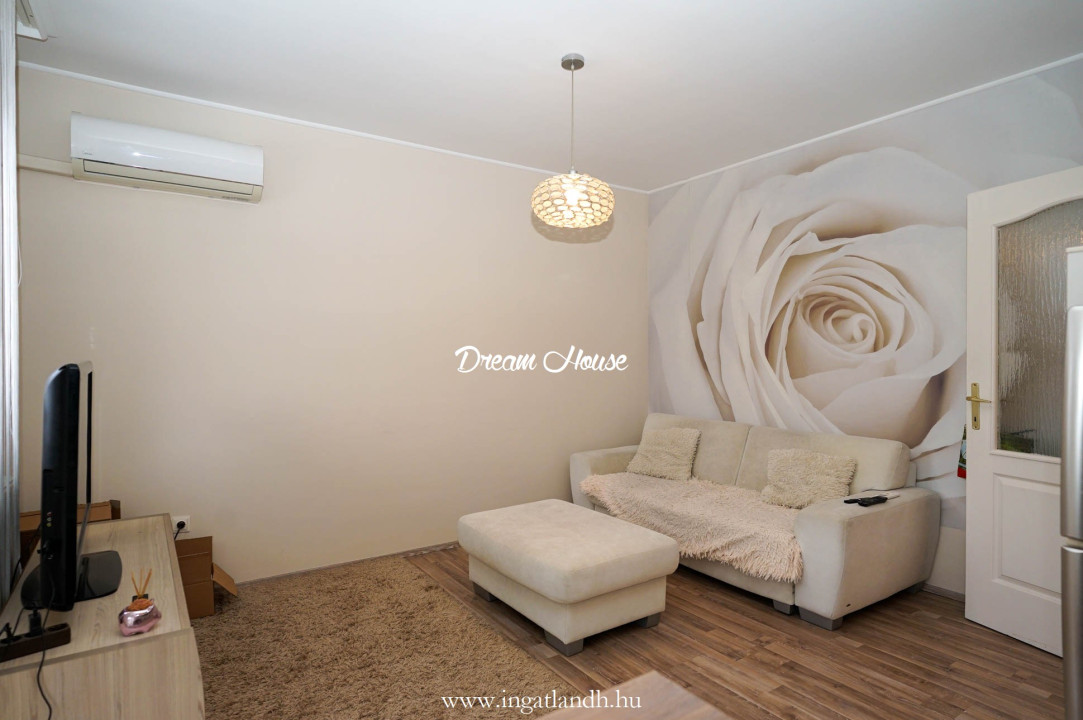 A lakás 1 szoba + nappalis, amerikai konyhás elrendezésű, teljesen berendezett és gépesített, ízléses konyhabútorral, beépített szekrénnyel, klímával, riasztóval, valamint egy nagy erkéllyel, ahol kellemesen lehet pihenni.
