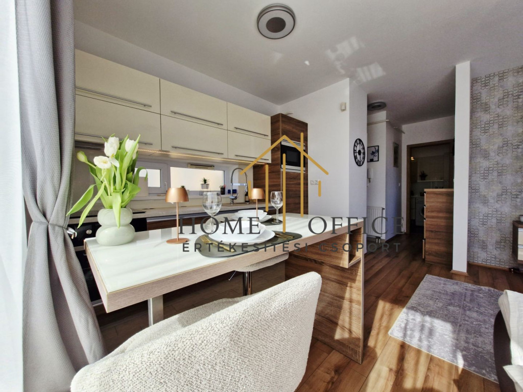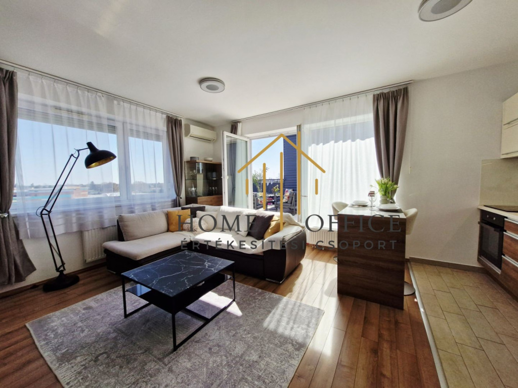 Nyíregyházán Spanyolkert lakóparkban, 2016-ban épült liftes társasházban, 4. emeleti, 45 nm-es, amerikai konyhás nappali+1 hálószobás, gépesített, bútorozott lakás 40 nm saját terasszal kiadó!