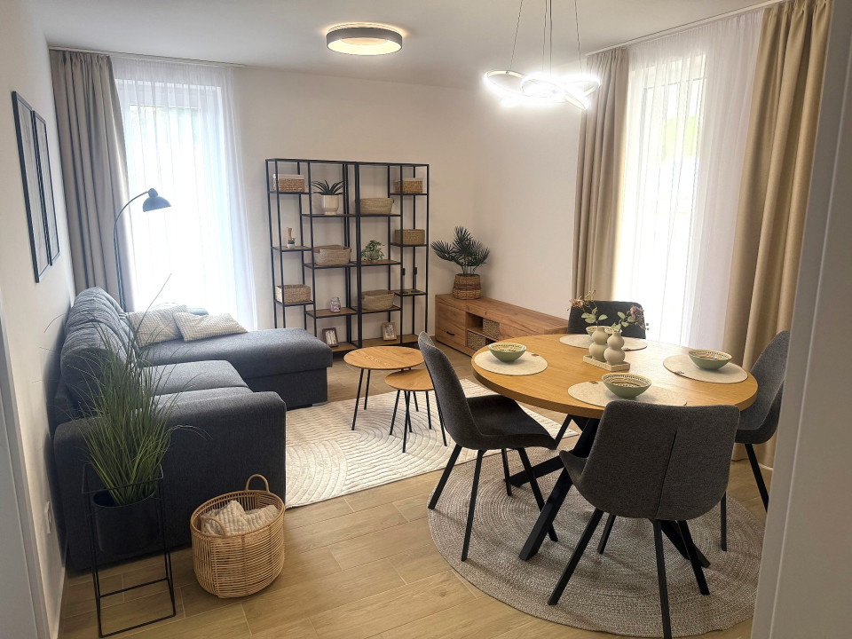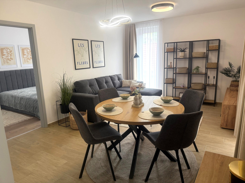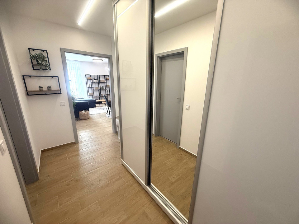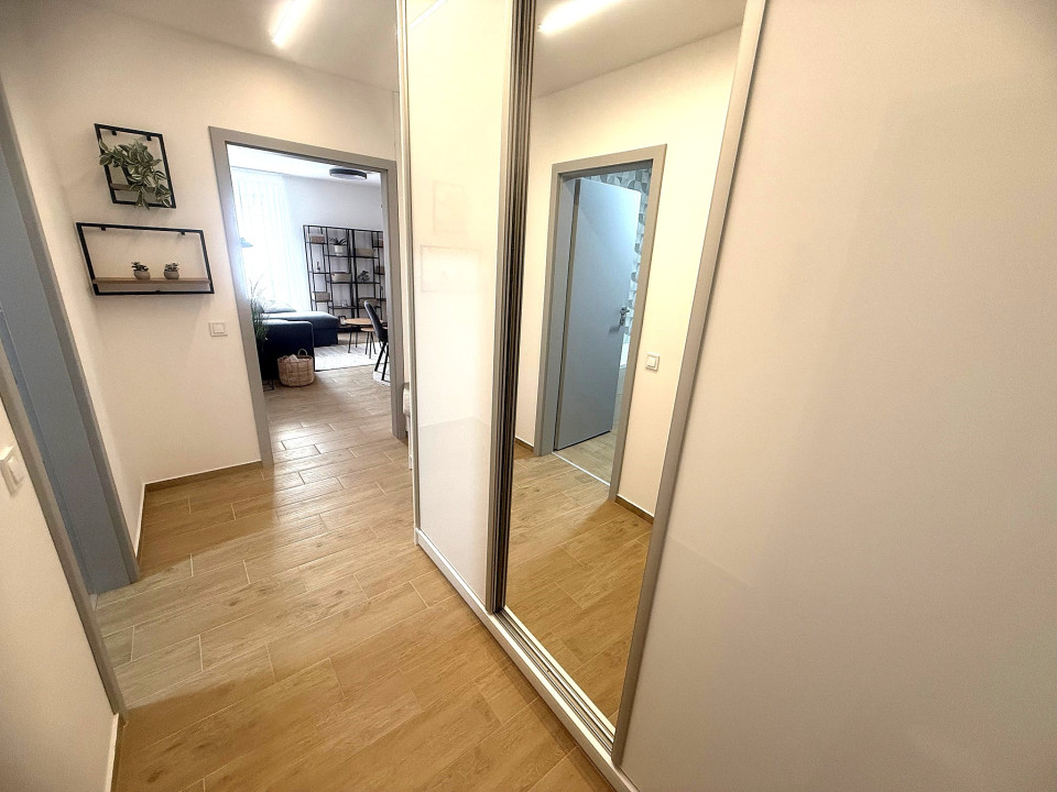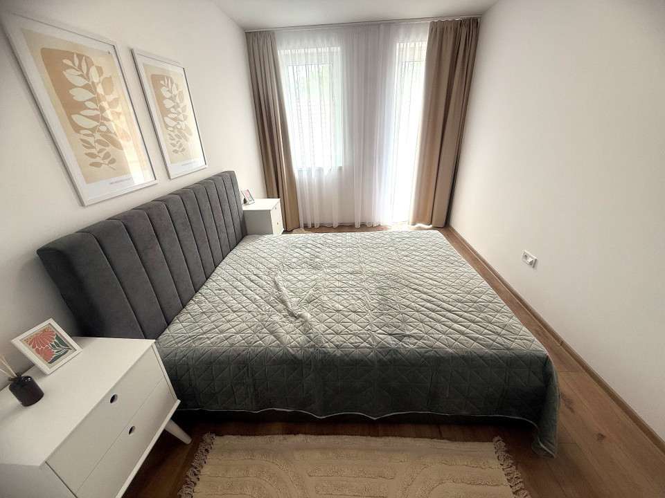 Nyíregyháza Rákóczi utcán 2025 -ben épült 50 nm-es 1 szoba nappalis amerikai konyhás lakás 20 nm terasszal fix parkolóval bútorozva gépesítve hosszú távra kiadó.