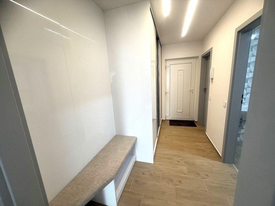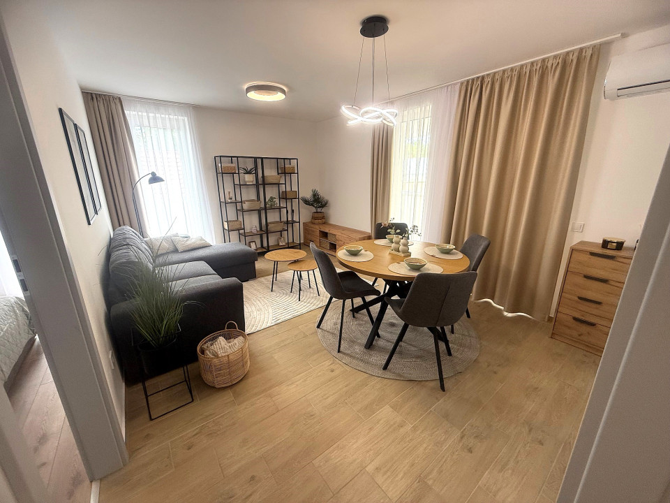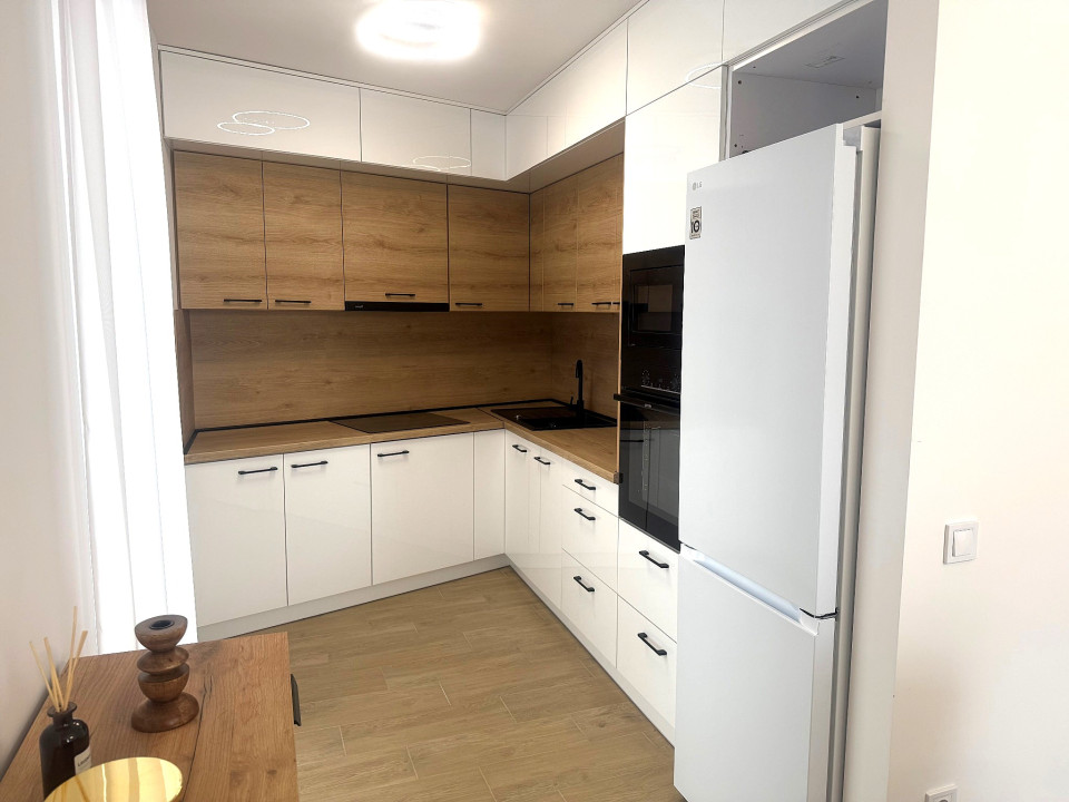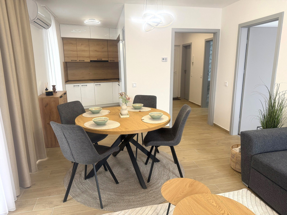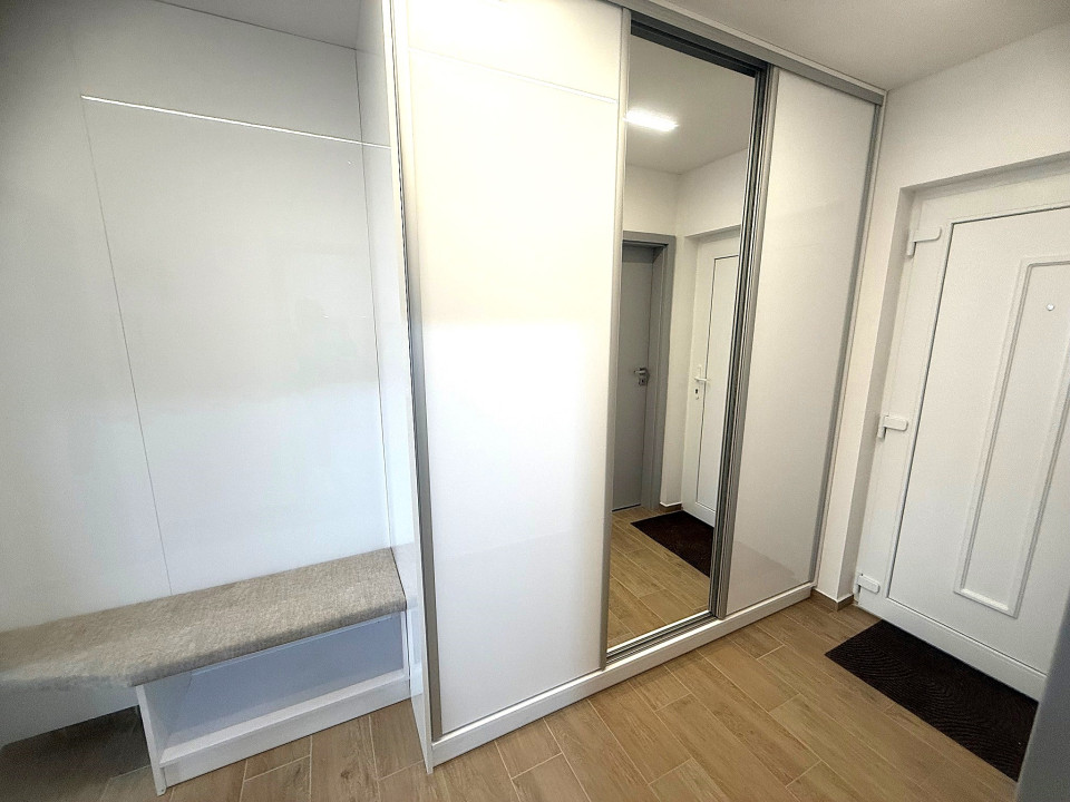 Nyíregyháza Rákóczi utcán 2025 -ben épült 50 nm-es 1 szoba nappalis amerikai konyhás lakás 20 nm terasszal fix parkolóval bútorozva gépesítve hosszú távra kiadó.