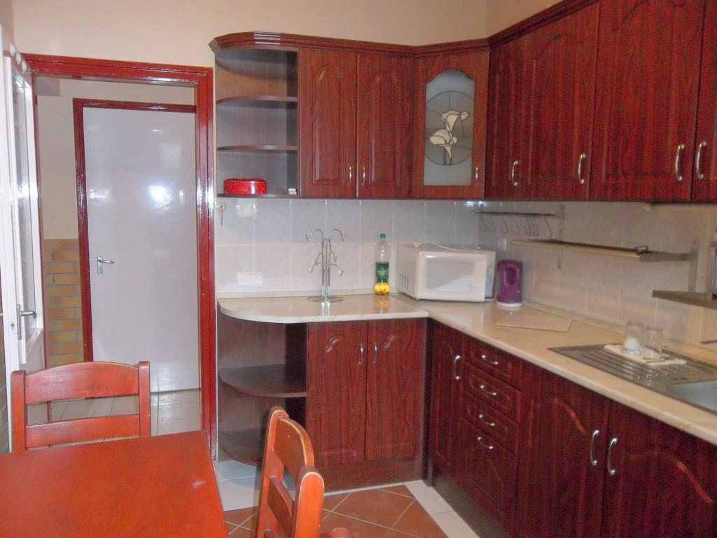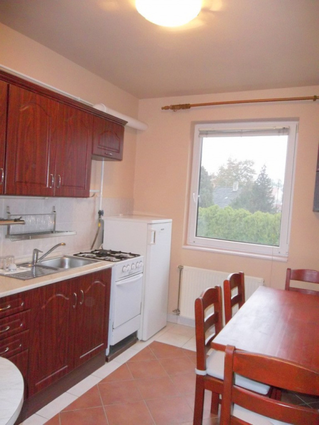 A wc a fürdőszobától külön helyiségben kapott helyet és egy praktikus kamra is van a lakásban. A tágas erkély csendes udvarra néz. Az udvar hátsó részében füvesített kertrész található szalonnasütővel, kerti paddal, melyet a lakók közösen használhatnak. A lakásban gépesítésként mosó-, hűtőgép, mikrosütő, vízforraló is rendelkezésre áll. A fotókon látható bútorokkal kiadó a lakás.