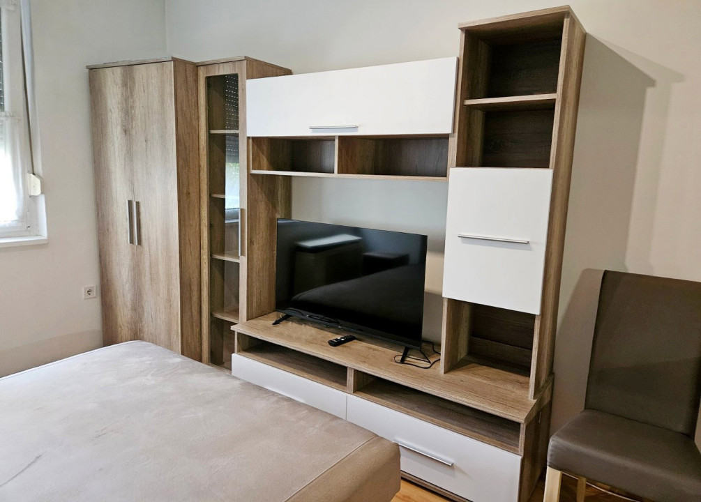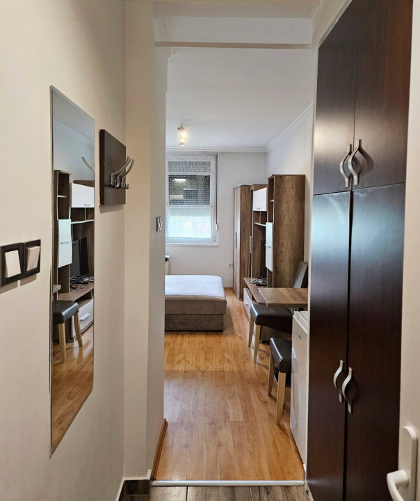 Kiadó egy praktikusan kialakított, teljesen bútorozott és gépesített garzonlakás Nyíregyházán, a Vasvári Pál utcán.