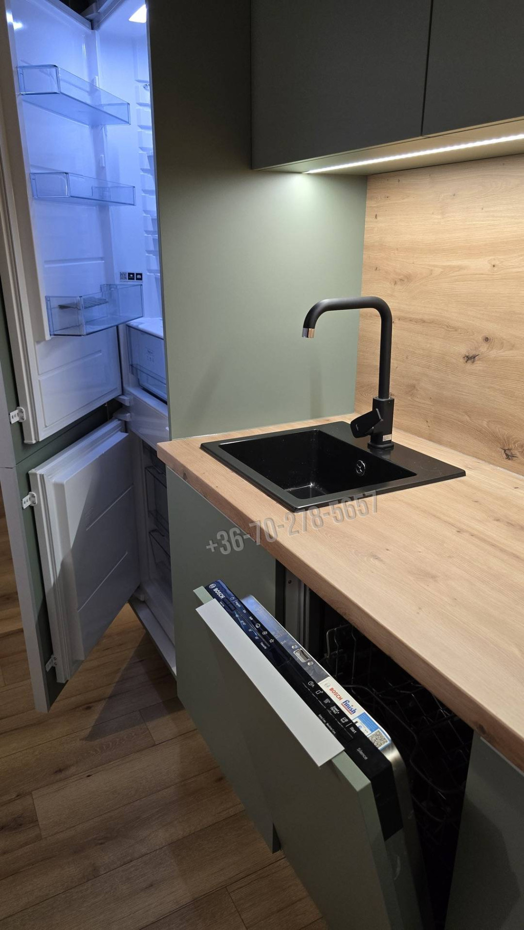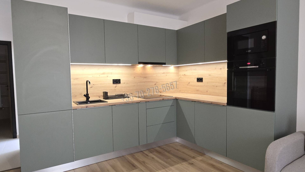 A GÉPESÍTETT KONYHA minden igényt kielégít: indukciós főzőlappal, mosogatógéppel, beépített mikróval és kombi hűtővel felszerelt. Új beltéri és biztonsági bejárati ajtók.