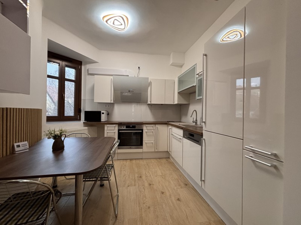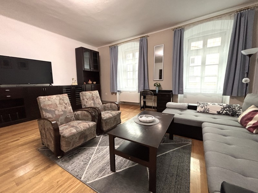 Pécs Belvárosában, a Ferencesek utcájában első emeleti, összesen 75 nm alapterületű, konyha - étkező, hatalmas nappali + 1 külön nyíló hálószobás, igényesen berendezett, exclusive, polgári téglalakás kiadó.