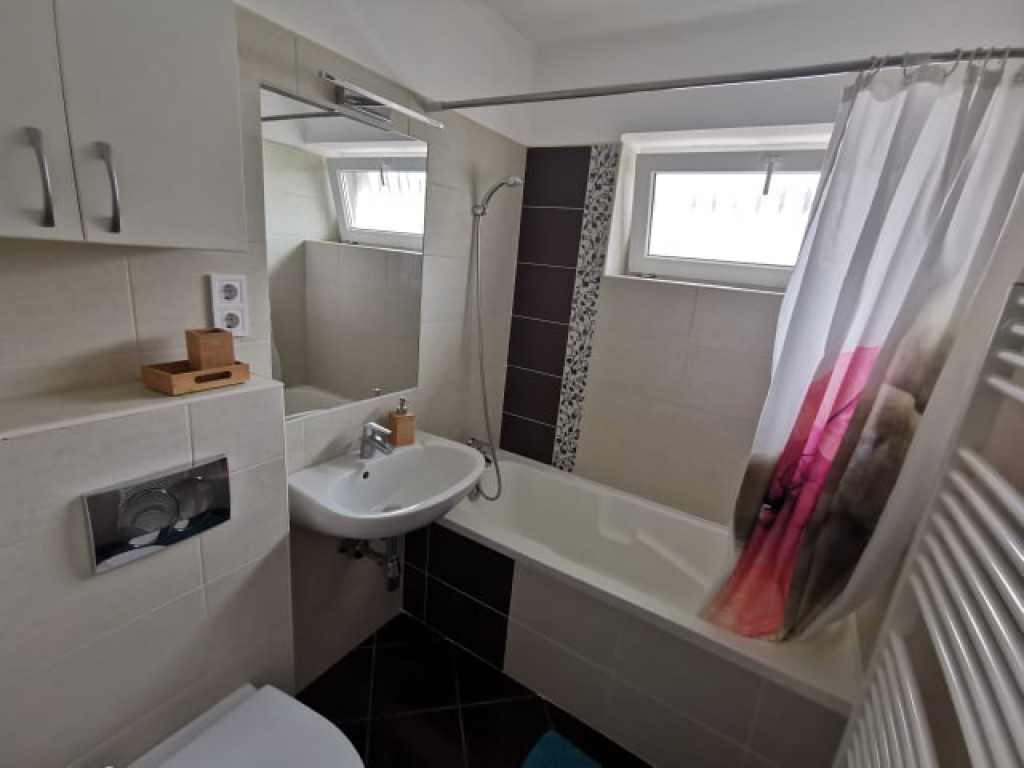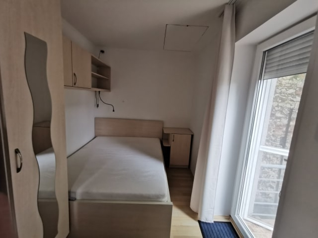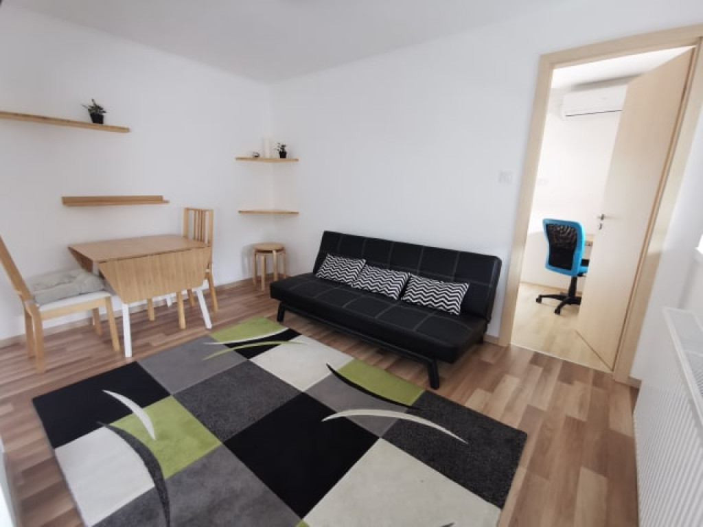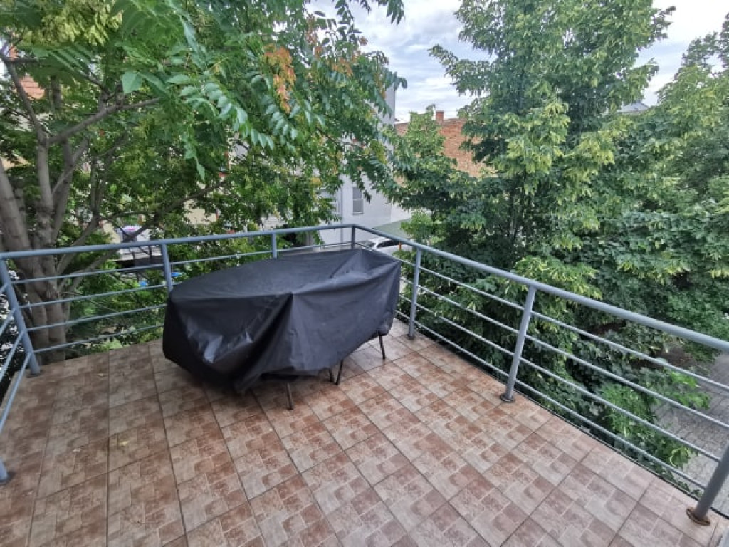 A lakásban egy előszoba, konyha+étkező+nappali, két tágas, különnyíló hálószoba, valamint egy 10 nm-es erkély található. Az ablakok szúnyoghálóval és redőnnyel felszereltek, belső udvarra néznek, így a lakás rendkívül csendes. Tartozik hozzá egy udvari gépkocsibeálló is, amely igény szerint bérelhető, havidíja 30 Eur/hónap. A bérleti díj euróban fizetendő 580 Eur/hónap. Dohányzás a teraszon megengedett, kisállat tartása megegyezés tárgyát képezi.