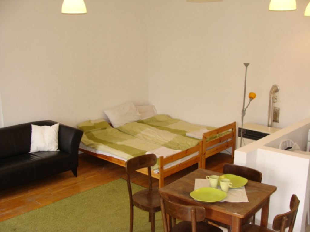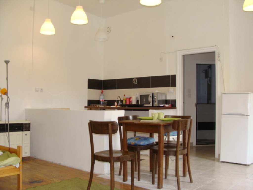Pécs történelmi belvárosának szívében, a Jókai tér alatt, csodálatos belső kerttel rendelkező műemlék jellegű épület I. emeletén, összesen 47 m2 alapterületű, konyha-étkező-nappali és egy hálószobával rendelkező, kiváló elrendezésű és jó állapotú, felújított fürdő-WC-vel, saját tárolóval rendelkező, rendkívül alacsony rezsivel bíró lakás teljes berendezéssel együtt max. 2 fő részére kiadó. A bérleményben dohányozni nem lehet, ugyanakkor kisállatot lehet tartani, ez esetben magasabb a bérleti díj (+20eFt/hó) és háromhavi kauciót kell fizetni.