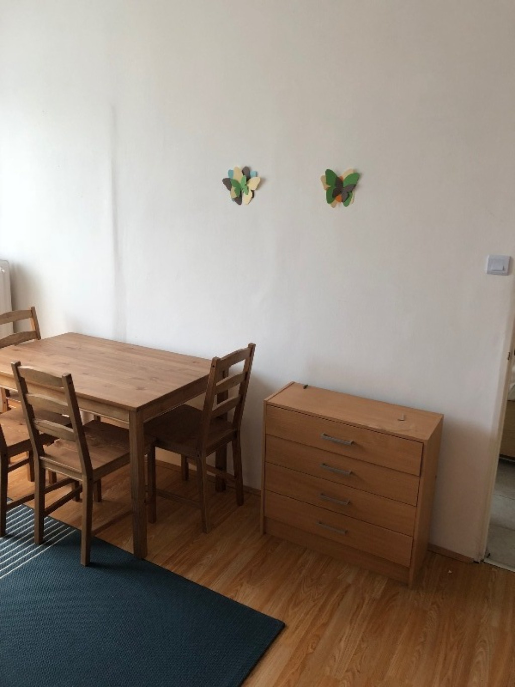 Pécsett az ÁOK közvetlen közelében kiadó egy negyedik emeleti 1.5 szobás, 36 m2-es (háló+nappali), felszerelt és bútorozott lakás diákok számára. Minden bútor és felszerelés tökéletesen jó állapotban van. Igen kedvező elhelyezkedés, boltok, iskolák, buszjáratok rendkívül közel, mégis csendes és nyugodt környezetben fekszik. Dohányzás és kisállat tartása nem megengedett.