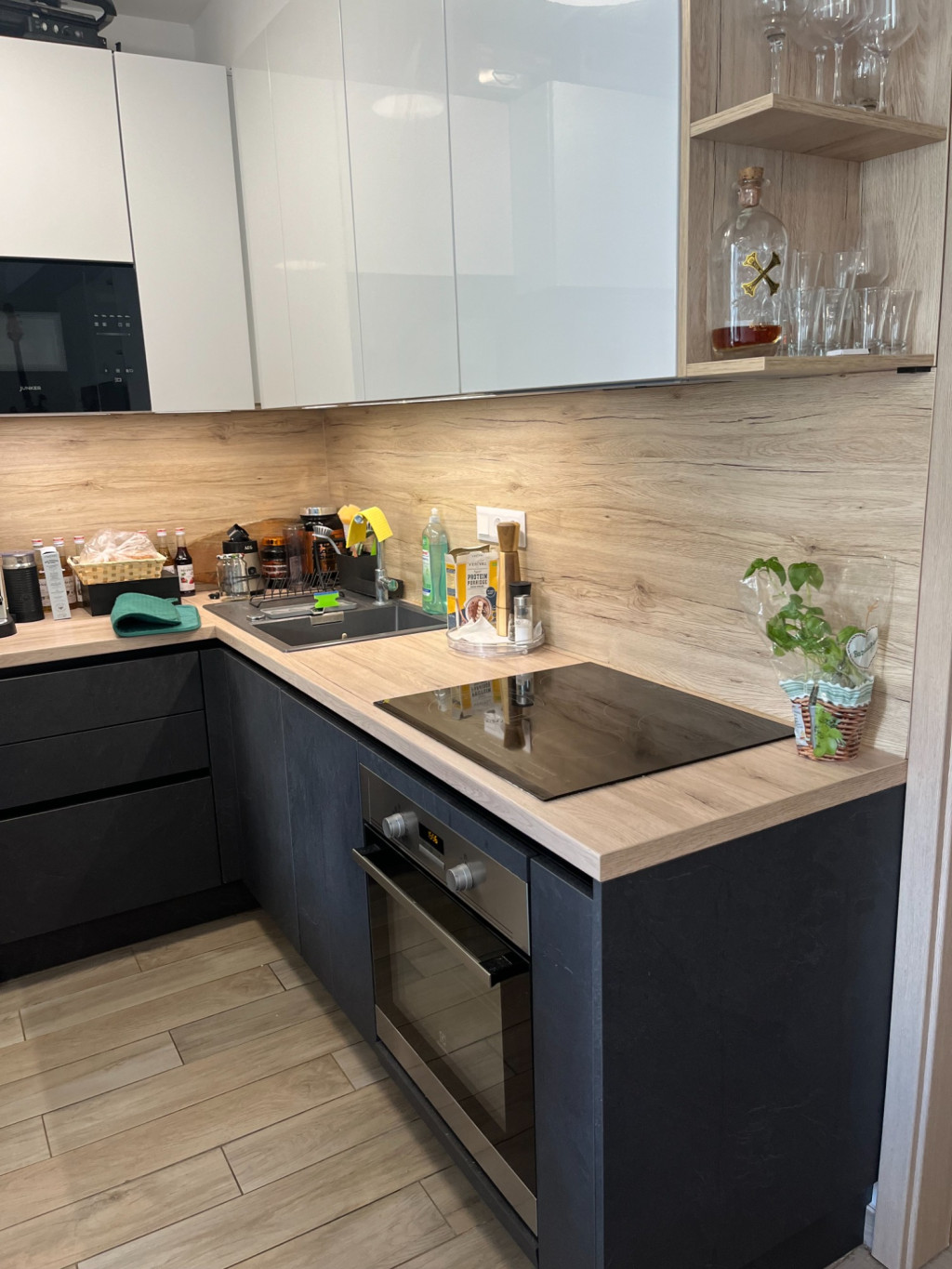 A lakás bútorozott, gépesített, klímával felszerelt. A szobák tágasak, így két személy kényelmesen elfér. Egy autóbeálló igény esetén használható.