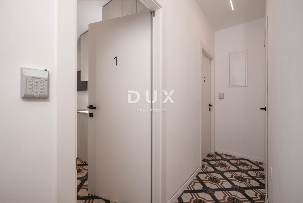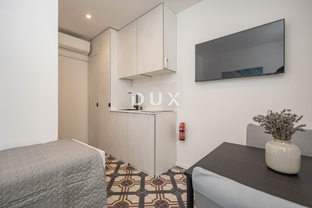 Kiadó egy újonnan épült, modern és jól felszerelt garzonlakás a városközpontban. Egy lakóház első emeletén található. Minden szükséges szolgáltatáshoz közel, 100 méteren belül a városközponttól, buszmegállóktól, üzletektől és minden mástól. Az 1. számú apartman teljes területe 25m2, teljesen újonnan felújítva. Leírás és felszereltség: Fűtés és hűtés a neves Daikin márkájú légkondicionálóval. A bejárathoz kulcskártyával lehet hozzáférni és vezérelni minden bejáratnál. Zuhanyzó, dizájner szaniterek fekete csaptelepekkel. Ágy egy + egy fő részére. Közös mosókonyha; mosógép, vasalódeszka, vasaló és tisztítószerkészlet. Bérleti díjak és feltételek: A havi bérleti díj 595 euró, amely magában foglalja a rezsiköltséget, a vizet, a szemétszállítást, valamint az optikai internetet, amely benne van az árban.