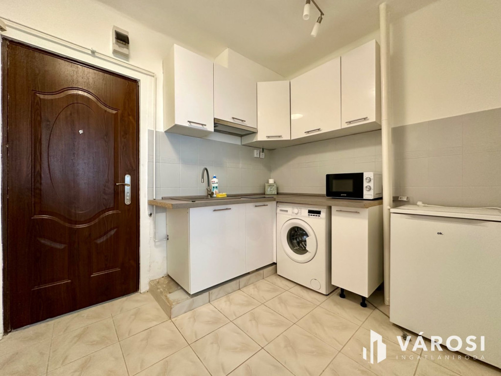 A lakásban 1 szoba, konyha/előszoba, fürdőszoba található.