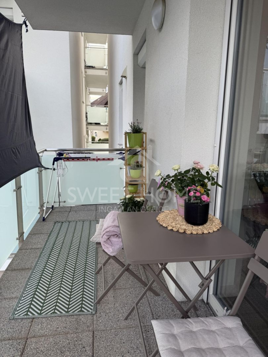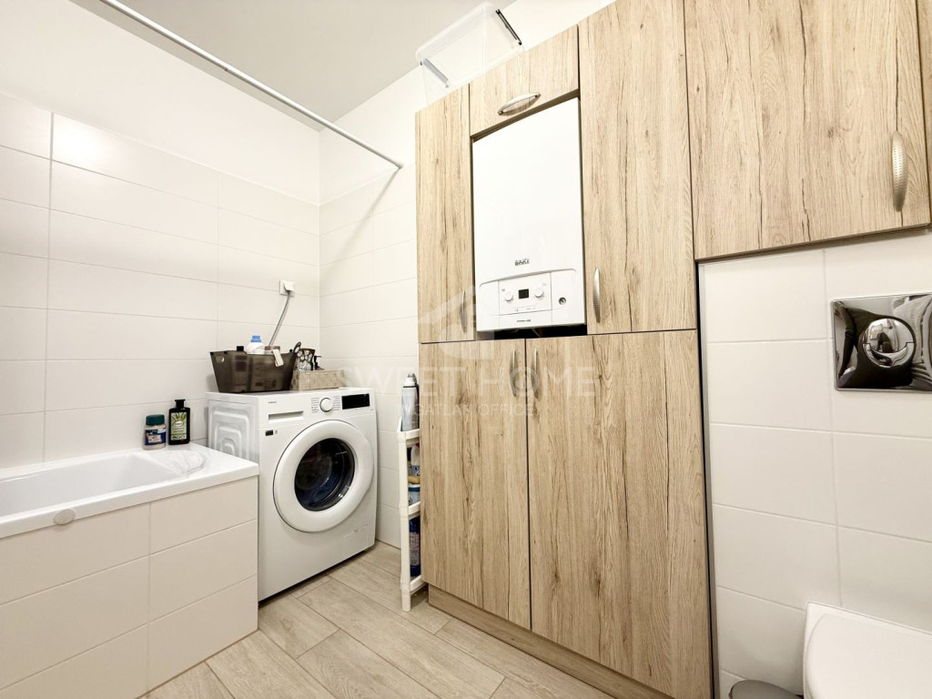 Tartozik hozzá egy saját tároló és egy felszíni gépkocsi beálló zárt lakóparkban.