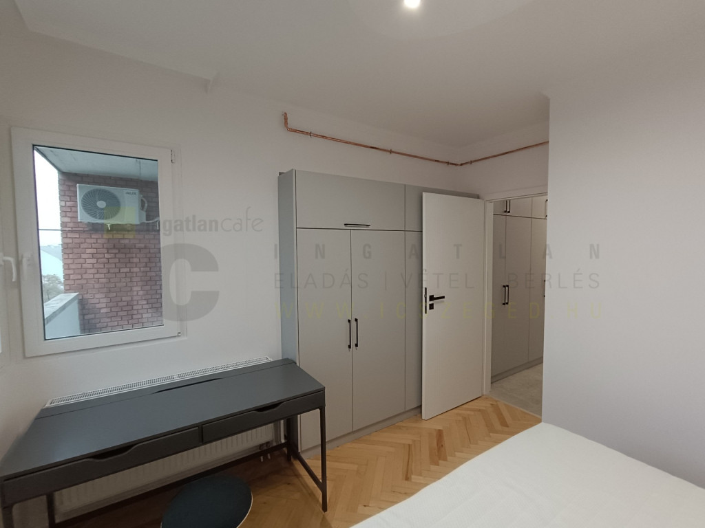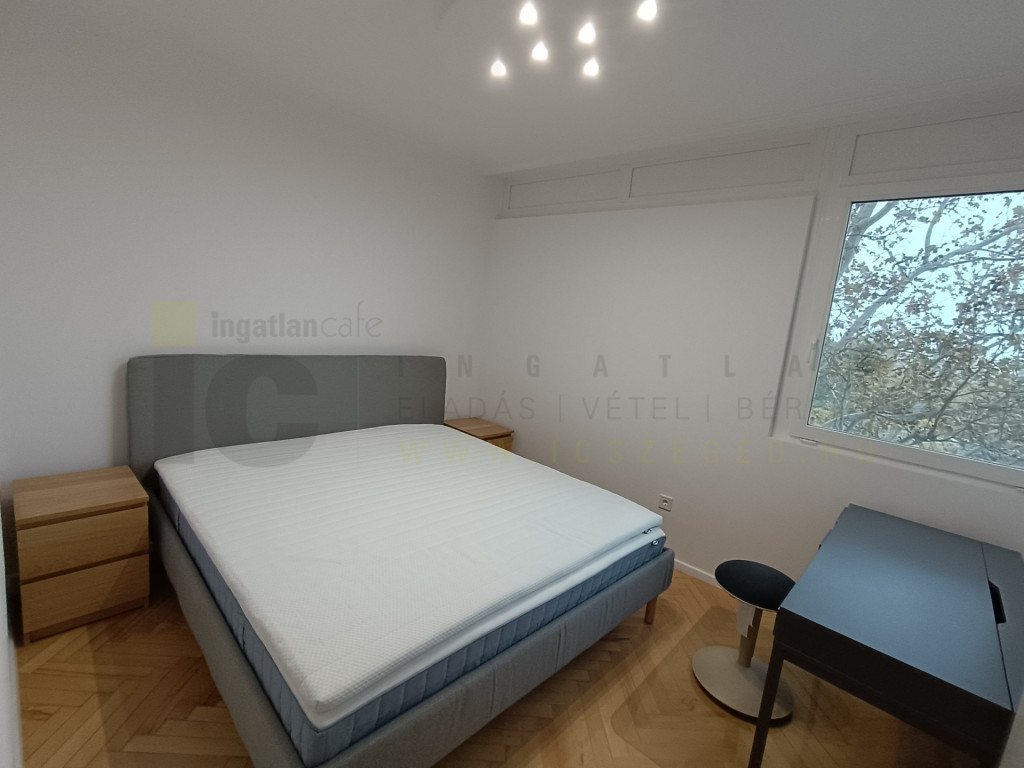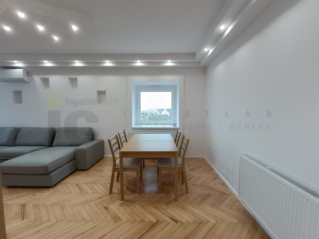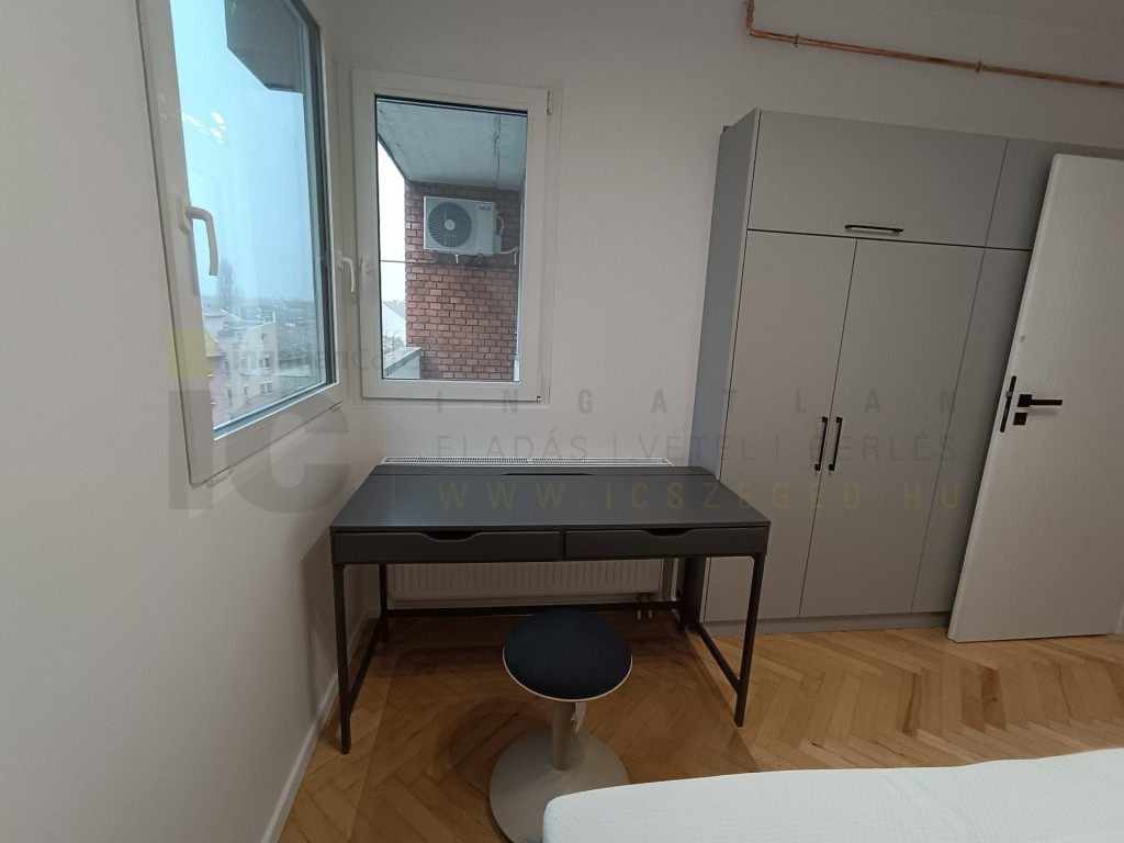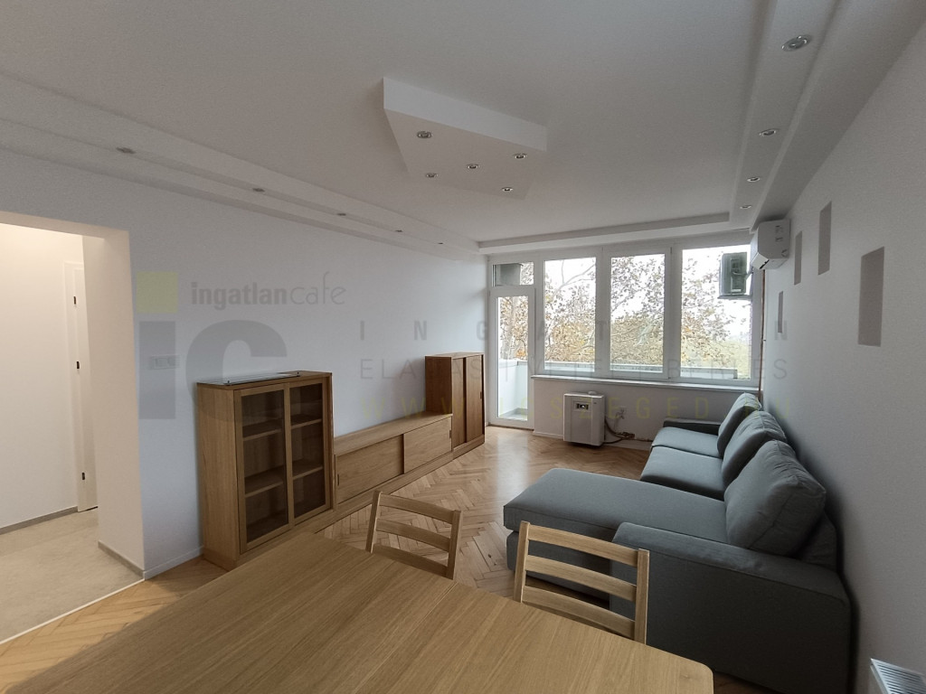 Szegeden, a Bécsi körúton kiadó ez az 5.emeleti 52 m2-es Nappali+1 hálószobás. teljes körűen felújított bútorozott, gépesített lakás.