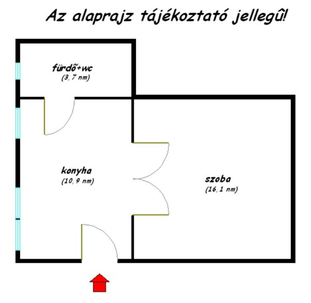 - Egyszobás, praktikus elrendezés: jól kihasználható tér, kényelmes mindennapi használatra.