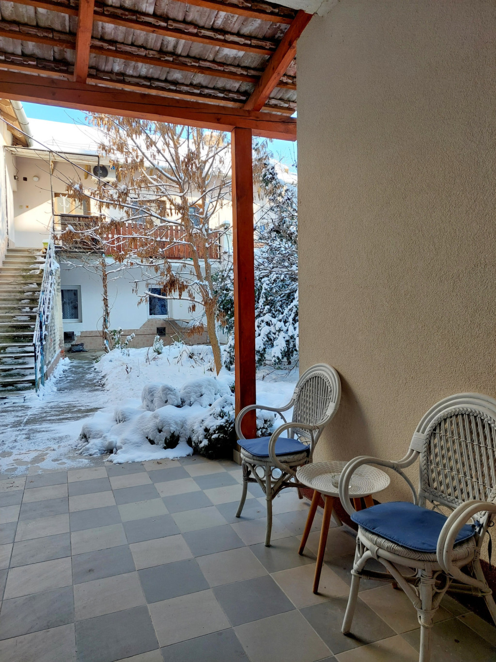 - Bejárati ajtó előtt kis udvari kiülési lehetőség: kellemes extra tér reggeli kávéhoz vagy esti pihenéshez.
