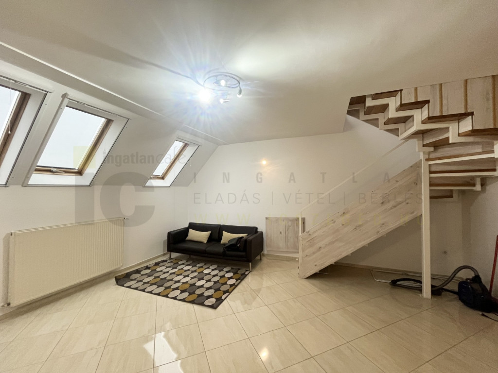 -napfényes, D-Ny-i tájolású , belső kétszintes lakás