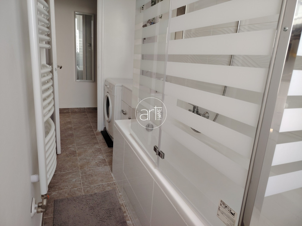 A lakás teljesen bútorozott és gépesített, így minden adott a kényelmes mindennapokhoz. A hálószobában két egyszemélyes ágy található. A nappali tágas és világos, így igazán otthonos tér fogad. A konyha jól felszerelt: tűzhely, hűtő, mikró is rendelkezésre áll. A fürdőszobában található mosógép. A klíma gondoskodik a kellemes hőmérsékletről a nyári hónapokban, télen pedig a központi fűtés radiátoros hőleadükkal biztosítja a meleget.