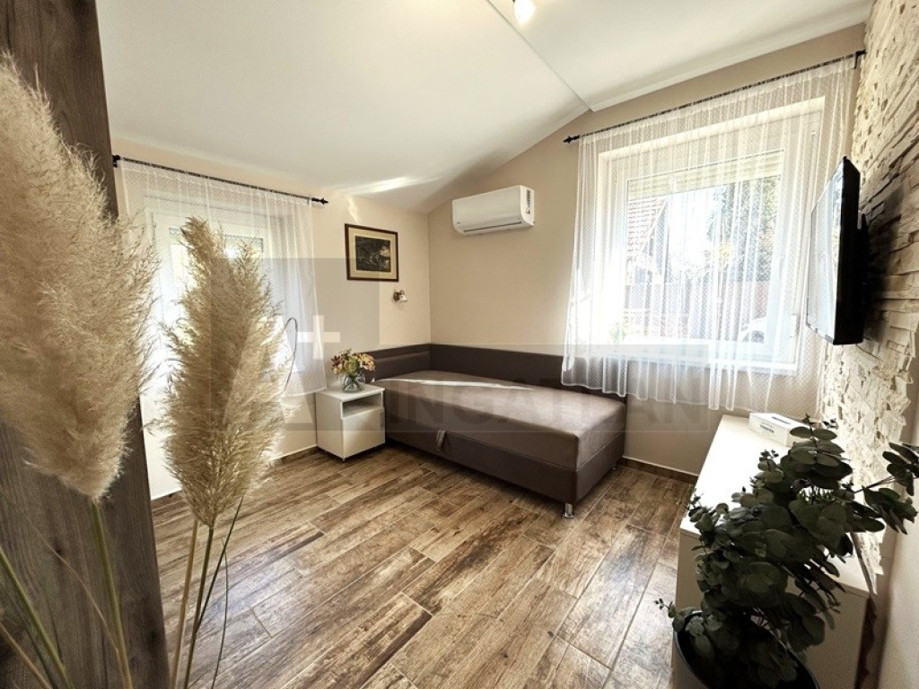 Az apartmanház egy 1000 m2-es telken van 293 m2-es földszintes lakótérrel, mely kialakítása során megvalósult 4 db 1 ágyas és 4 db 2 ágyas / franciaágyas / lakás . A szobák saját fürdőszoba -wc-vel és teljes bútorzattal ellátott.