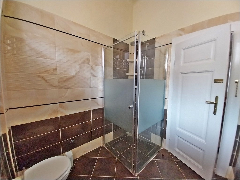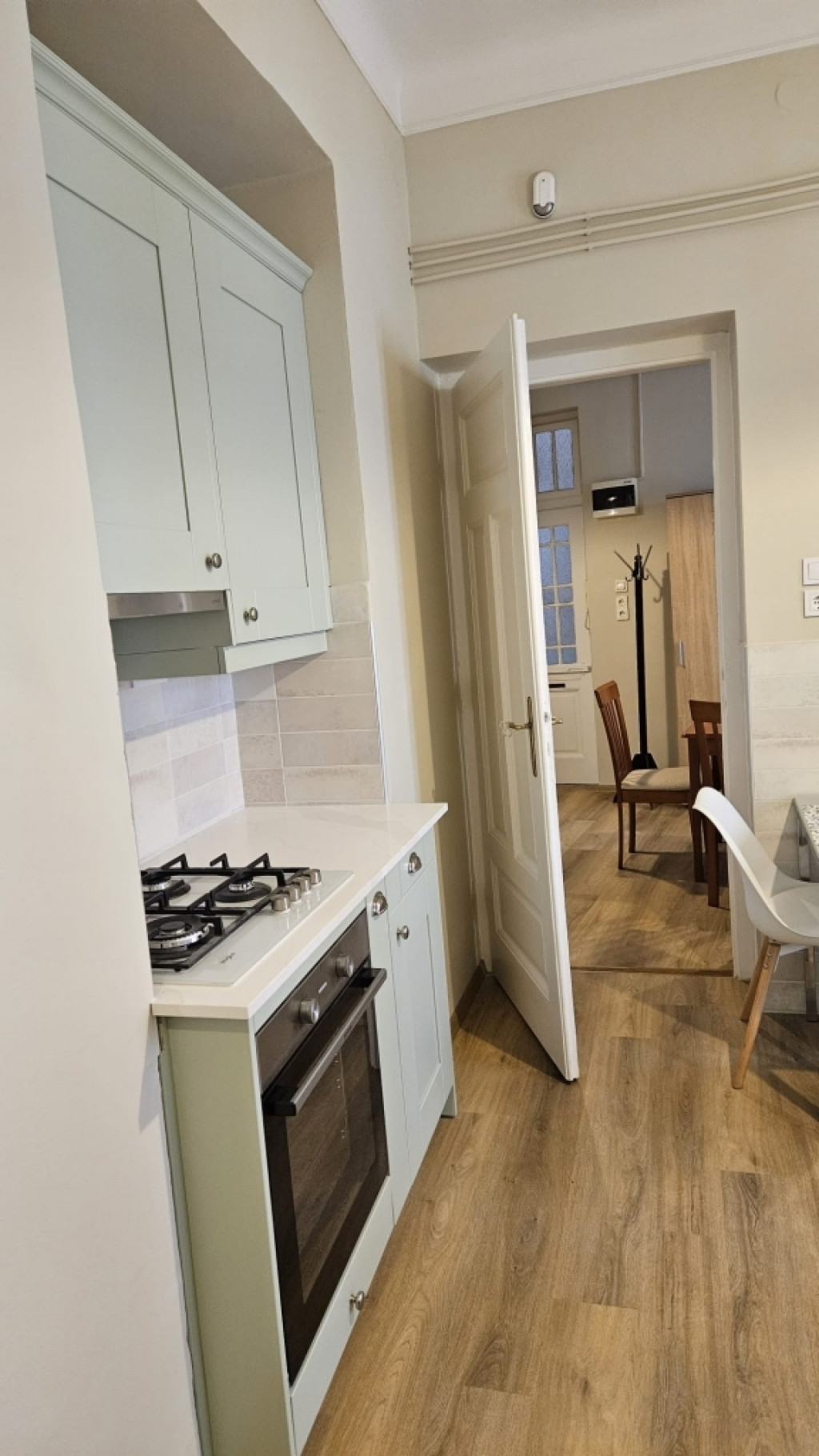 Az ingatlanba érve a hall-on keresztül érhető el a konyha-étkező, fürdőszoba, valamint a 3 szoba. A tágas, világos szobák dupla szárnyú ajtókkal összenyithatók. Konyha-étkező ablaka belső udvarra néz. A fürdőszobába zuhanykabin került beépítésre.