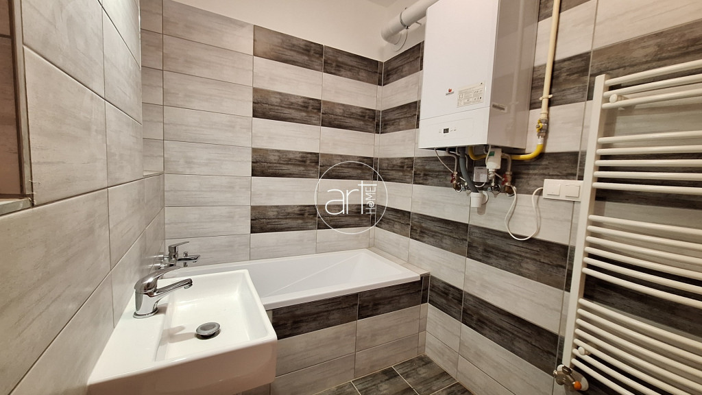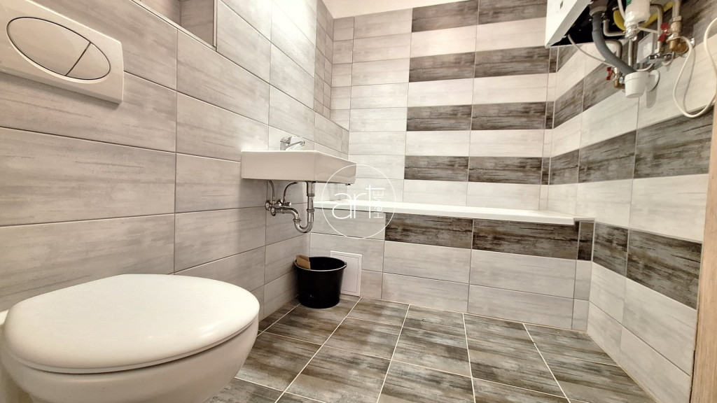A lépcsőházból egy praktikus előszobán keresztül érkezünk meg a világos, egy légterű élettérbe, ahonnan közvetlen kijárat nyílik a nyugati fekvésű fedett teraszra, így a lakás természetes fénnyel jól ellátott és szellős. A fürdőszoba zuhanyzóval, mosdóval és WC-vel is felszerelt. Egy különálló WC is rendelkezésre áll, emiatt kimondottan alkalmas irodának, oktatási célra, vagy egyéb ügyfélfogadásra. Hűtő-fűtő klímával látták el, a melegről gázcirkó kazán és padlófűtés gondoskodik. A rezsi kifejezetten kedvező, a közös költség mindössze kb 13.000 Ft havonta.