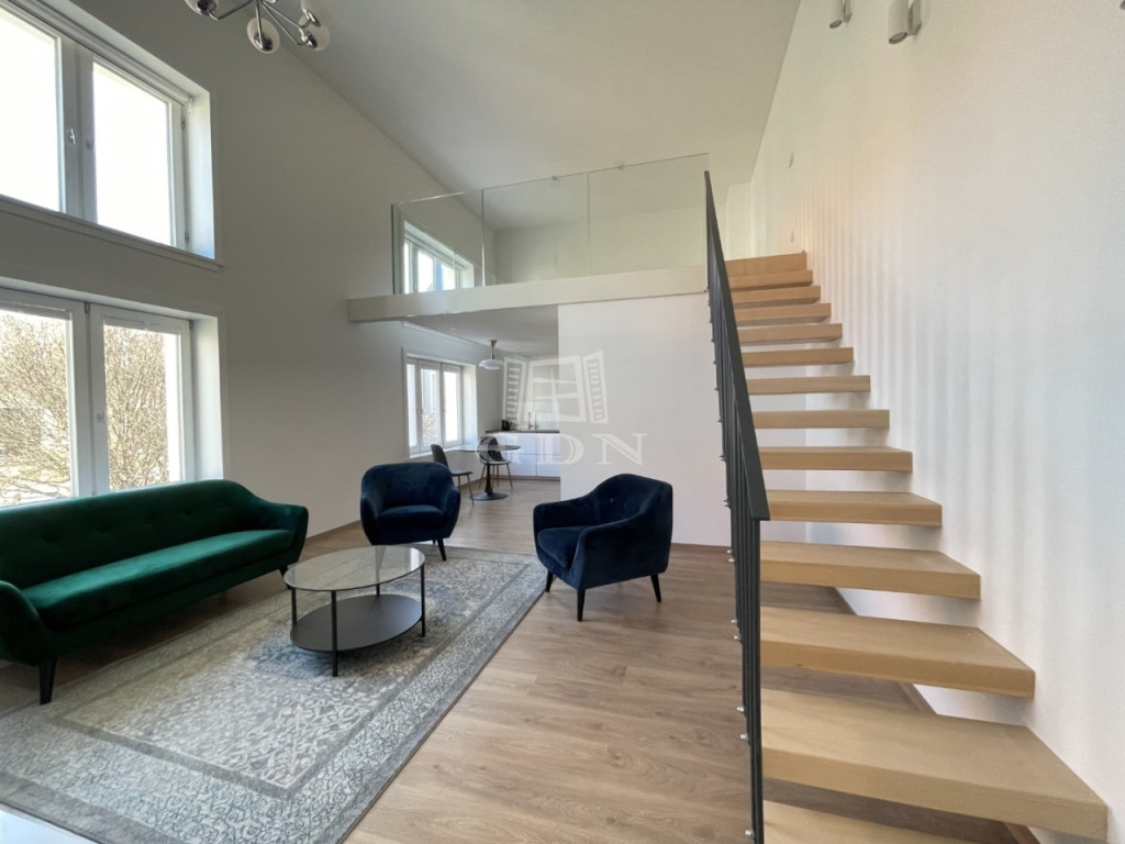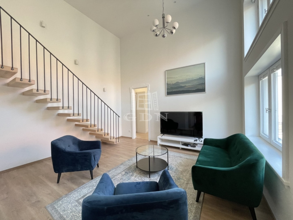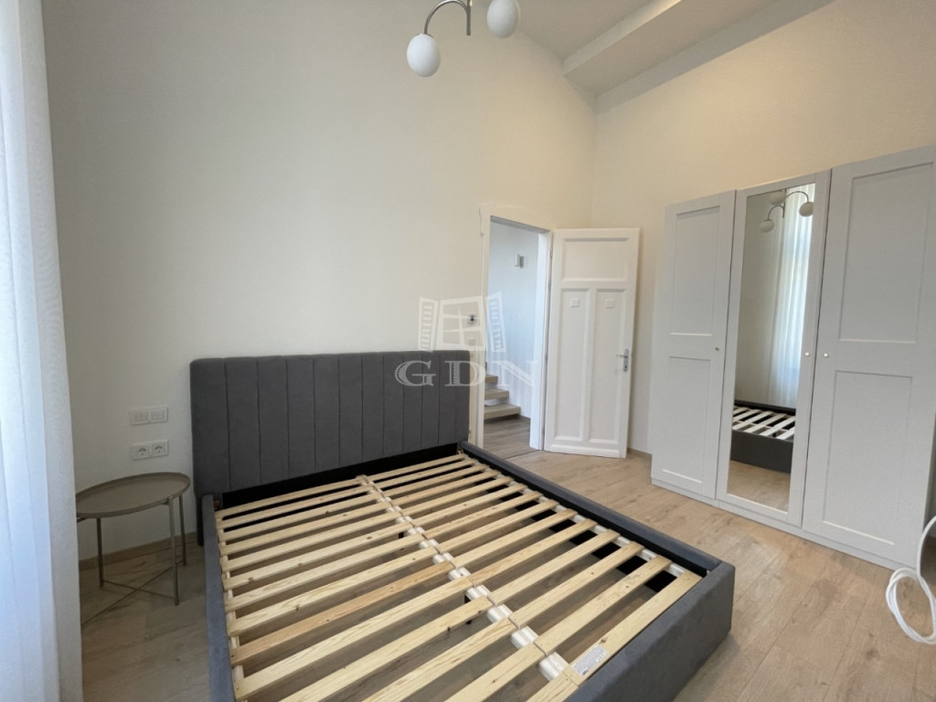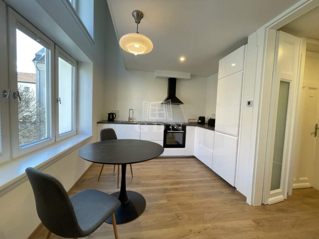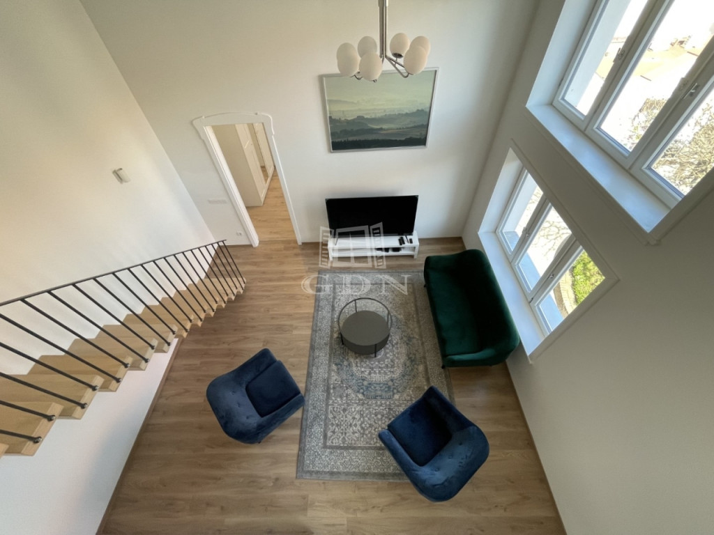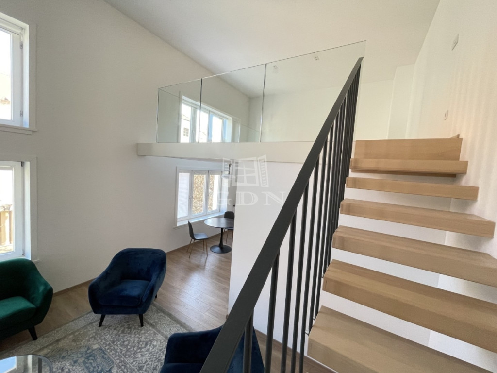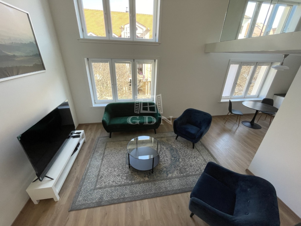 BL-003590. Történelmi belvárosban, csendes környezetben, 1 emeleti, modern, újszerű 73 m2 nagyságú, amerikai konyhás nappali + 1 szobás + galériás, teljesen gépesített lakás hosszútávra kiadó.
