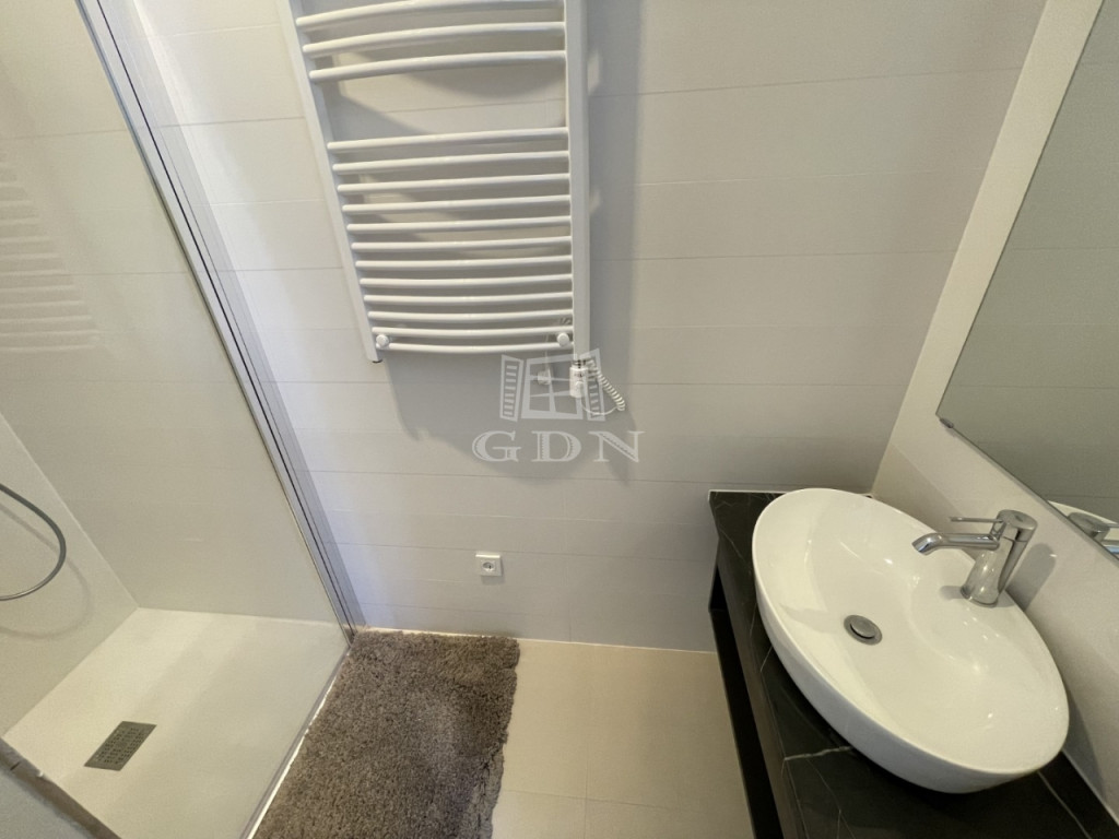 A fürdő és a wc, egy helységben található. A fűtésről – hűtésről és a melegvíz előállításról korszerű, modern, föld – víz hőszivattyú gondoskodik, padló – fal – mennyezeten keresztüli hőleadással. Az épület tetején elhelyezett napelemeknek köszönhetően a lakás rezsi költsége nagyon kedvező. A belső udvarról, akadálymentesen, lifttel közelíthető meg. A konyha modern gépekkel felszerelt. Parkolás fizetős övezetben és behajtási engedéllyel megoldható, fedett beálló bérlésére is van lehetőség a közelben található parkolóházban. A földszinten közös bicikli és babakocsi tároló került kialakításra. A közelben megtalálhatók kisebb boltok, éttermek, kávézók, és számos egyéb más szolgáltatók is. Autóbusz állomás 5 perc séta távolságra elérhető. Dohányzás és háziállat tartása nem megengedett. A lakás kialakításából adódóan 1-2 fő részére, családnak biztosít kényelmes és komfortos lakhatást.
