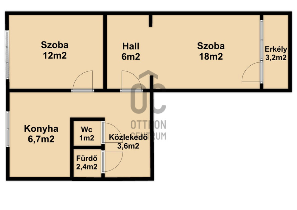 Az ingatlan 53nm-es, melyben található:két szoba + hall, konyha, előszoba, fürdőszoba, WC és Déli fekvésű erkély. A hall kíváló home office-ra.