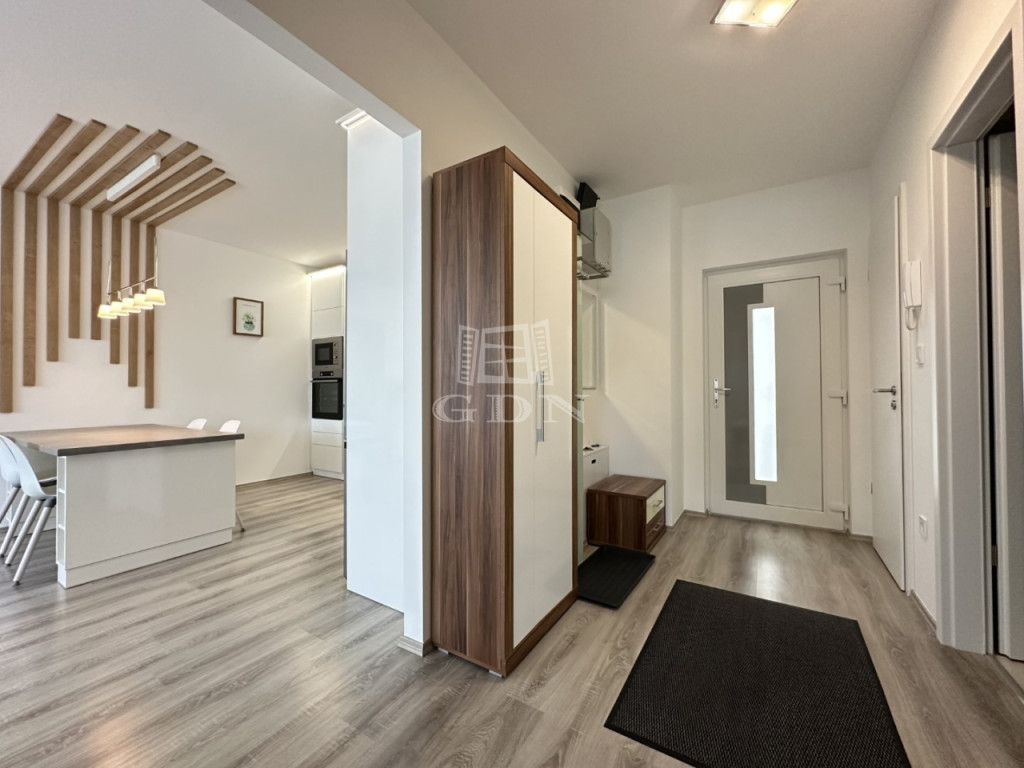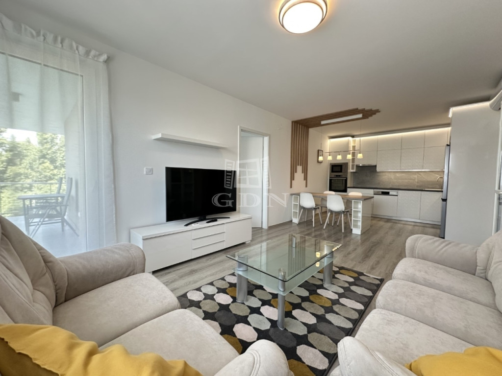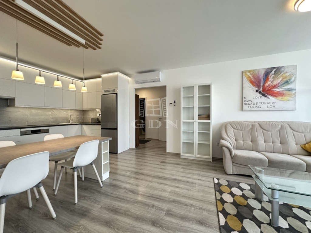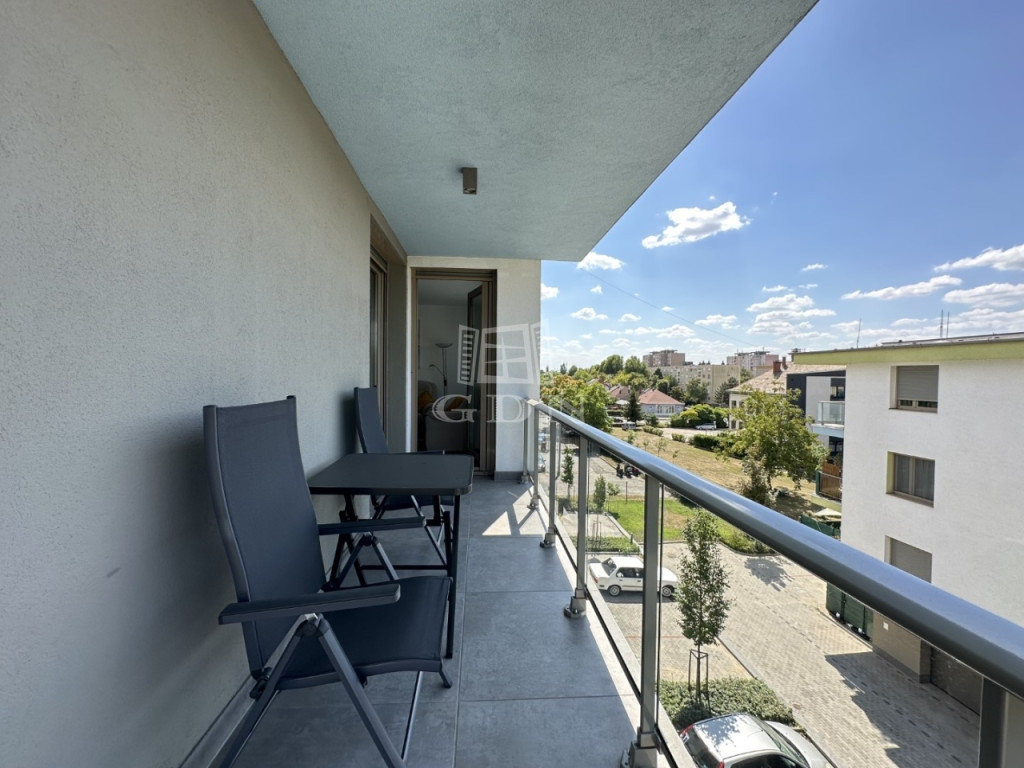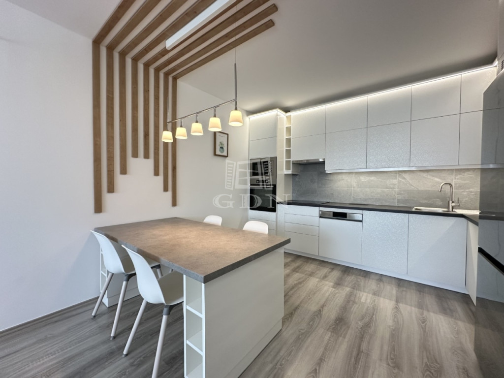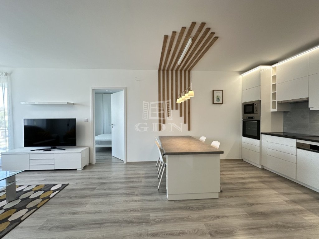 BL-004672. City Társasházban, modern akadálymentes, liftes épületben, 3. emeleten, 64 nm nagyságú, 12 nm-es erkéllyel rendelkező, amerikai konyhás nappali + 2 fél szoba elosztású, teljesen felszerelt lakás azonnali költözéssel hosszútávra kiadó.